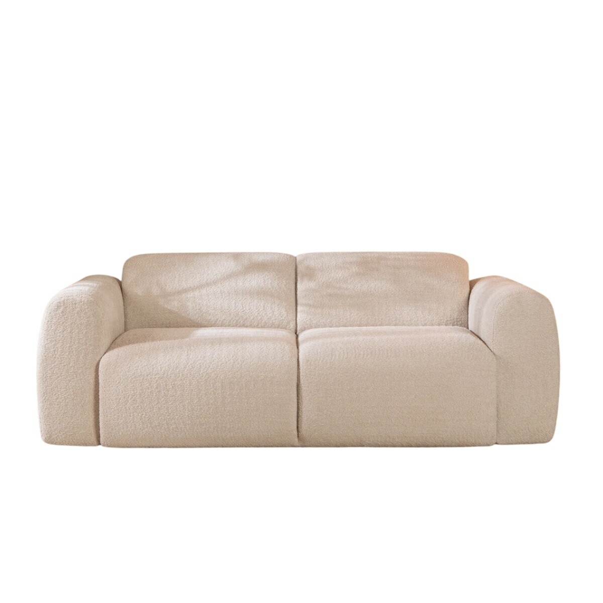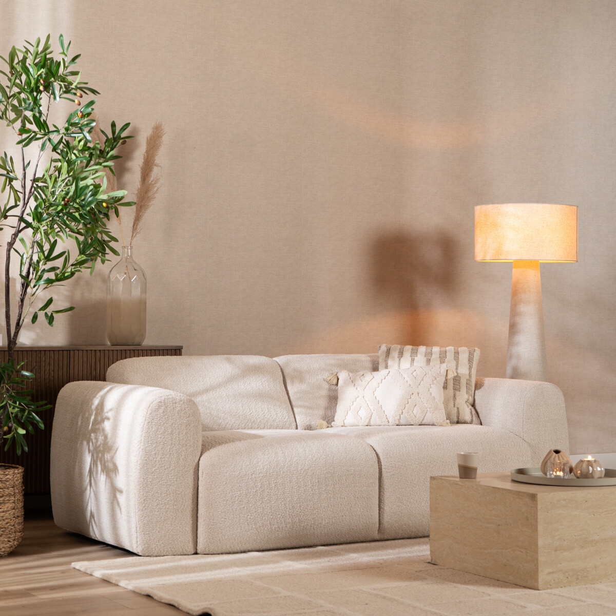 Deze Maine bank is bekleed met een stof van 100% polyester. Polyester is een erg sterk materiaal met een Martindale score van 45000, wat de bank scheur- en slijtvast maakt. De stof heeft een bouclé uitstraling en voelt lekker zacht aan, dit versterkt het comfort nog meer.