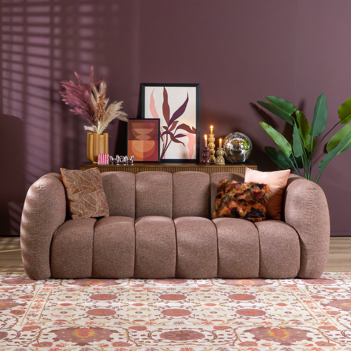 Met de 3-zitsbank Luca kies je voor een stijlvolle en comfortabele aanvulling op je woonkamer. Deze bank valt op door zijn robuuste, uitnodigende vormgeving en de zachte bouclé stof die direct voor sfeer zorgt in jouw interieur. Een ideale keuze voor wie op zoek is naar een bank met een tijdloze uitstraling en een luxe afwerking.