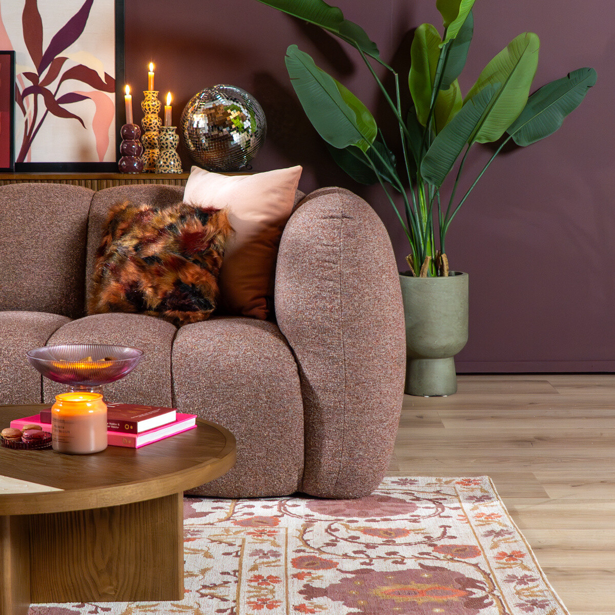 - De slijtvaste bouclé stof blijft lang mooi, zelfs bij intensief gebruik.