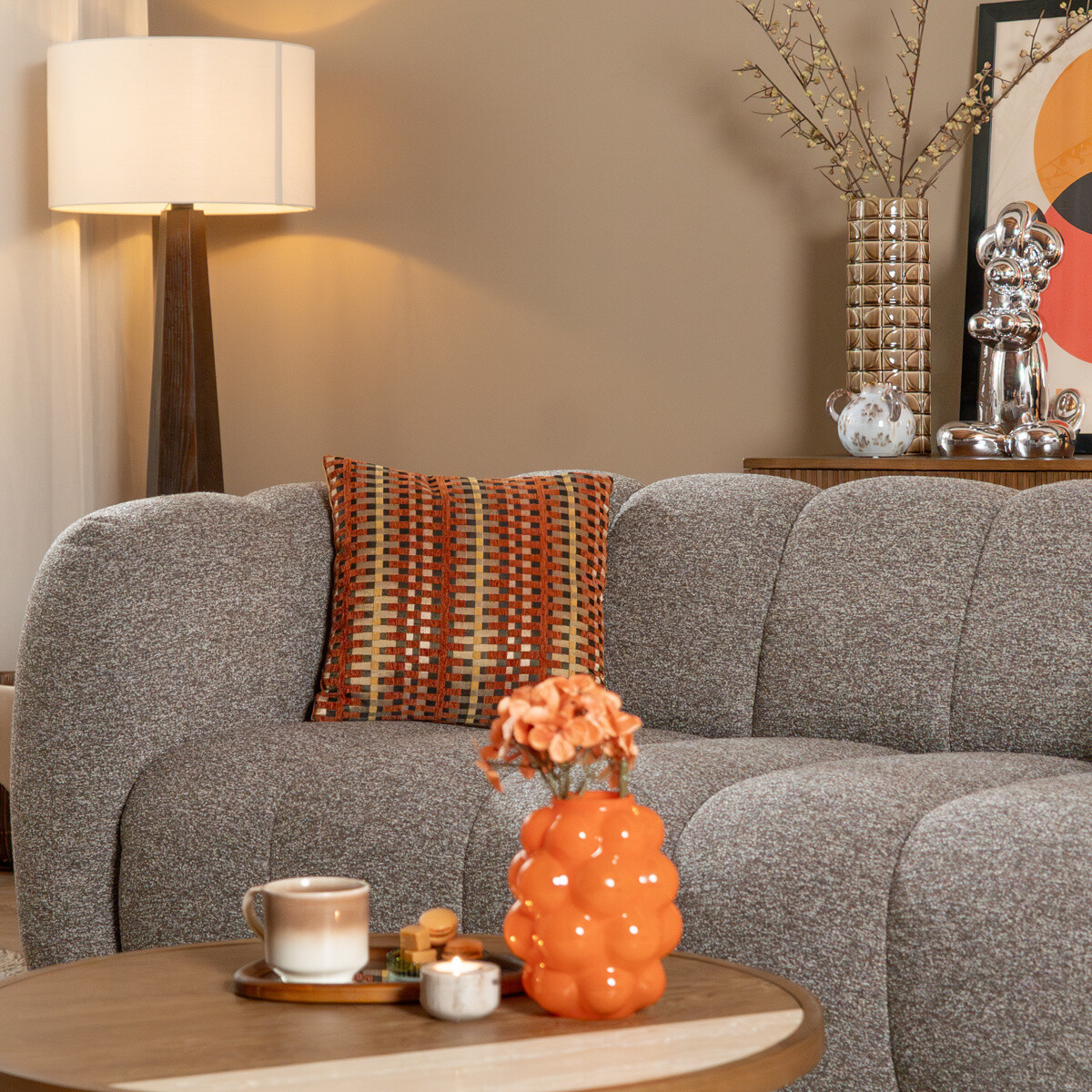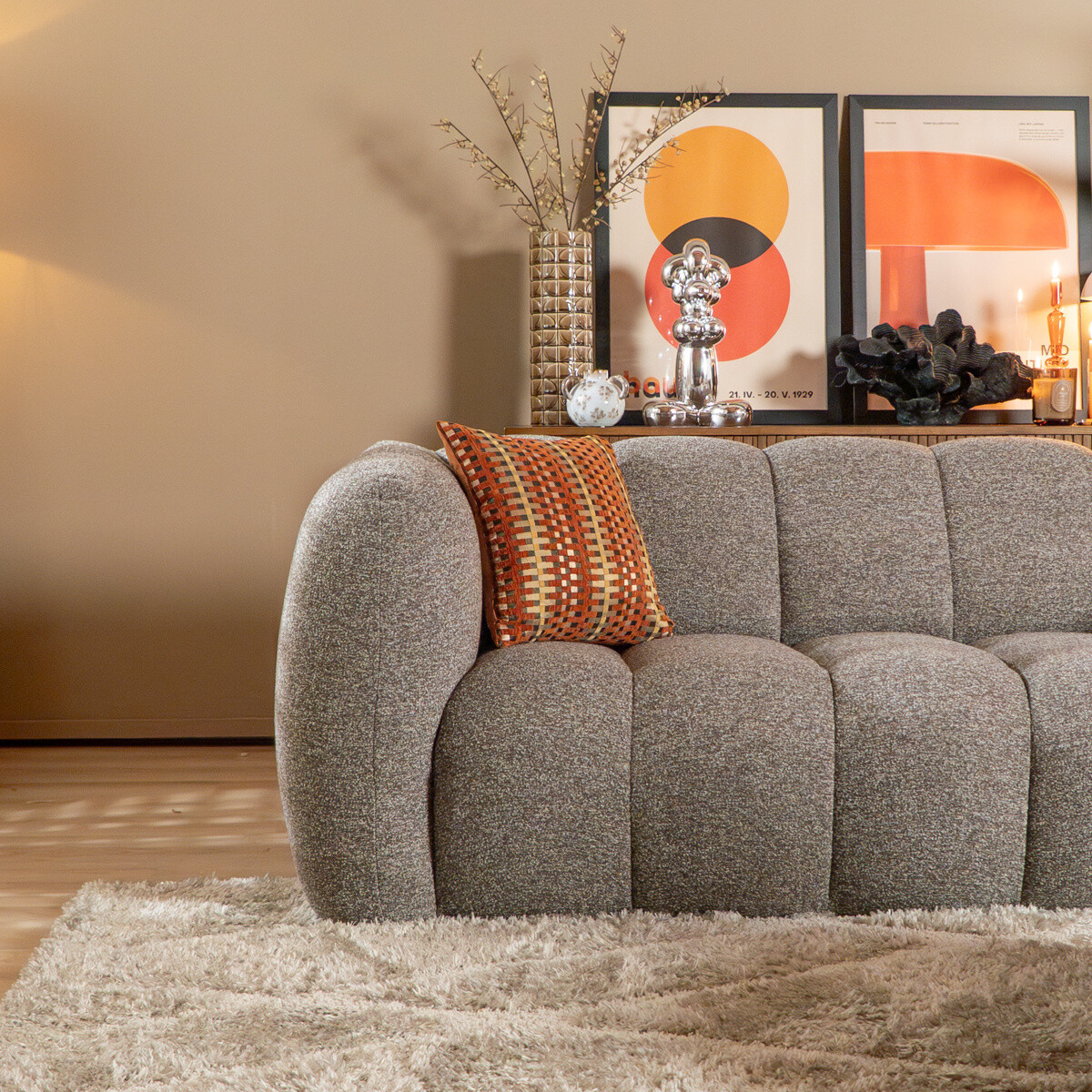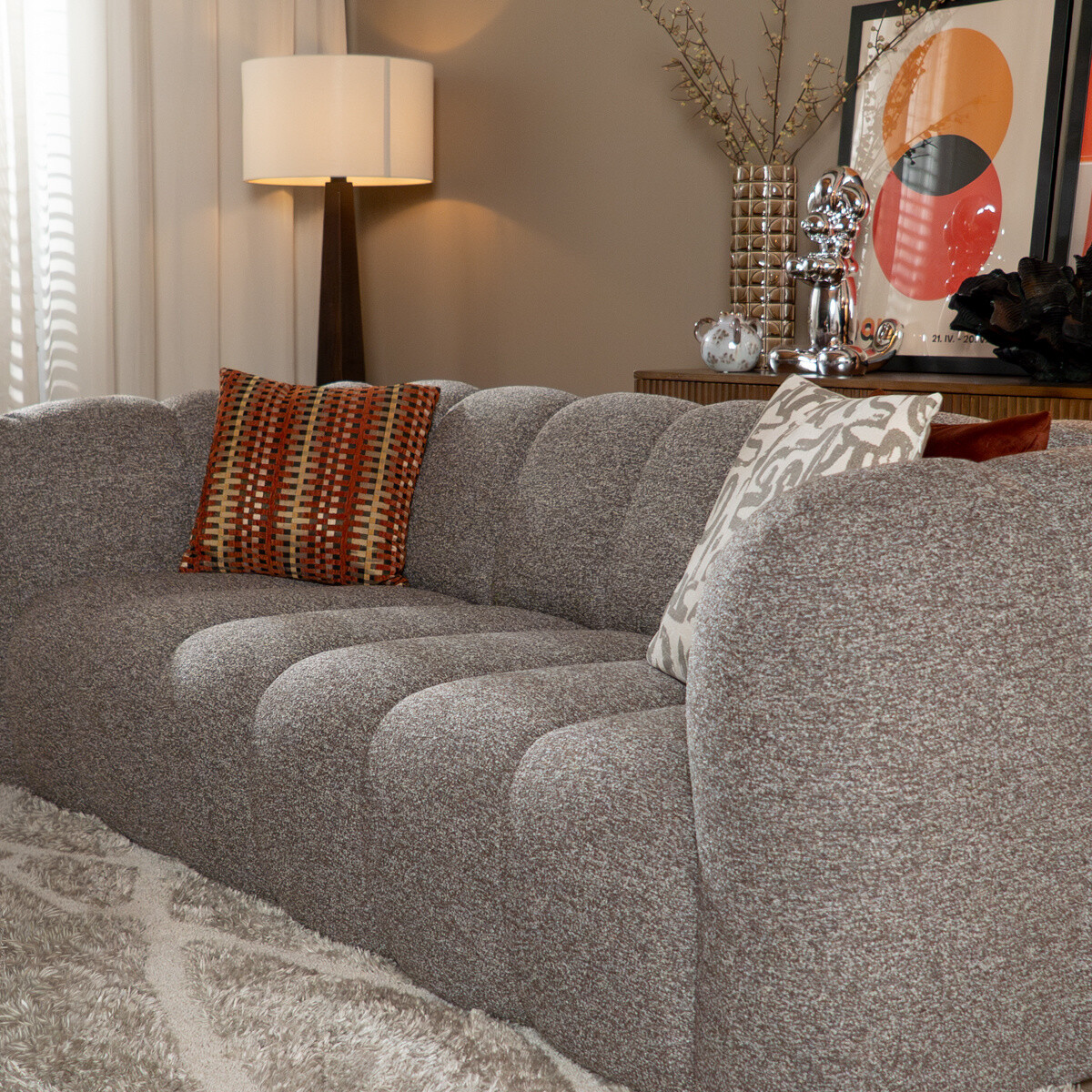 - De slijtvaste bouclé stof blijft lang mooi, zelfs bij intensief gebruik.