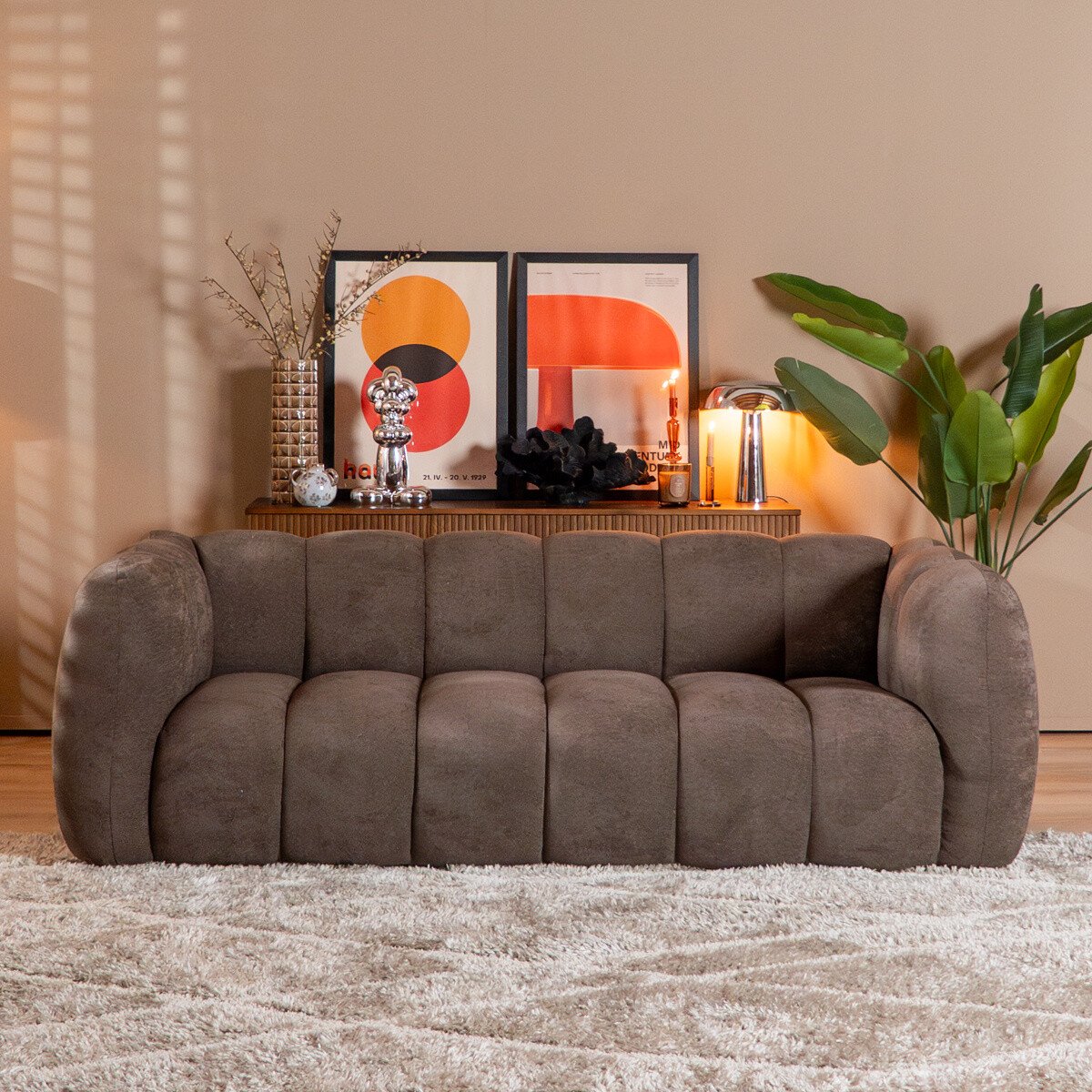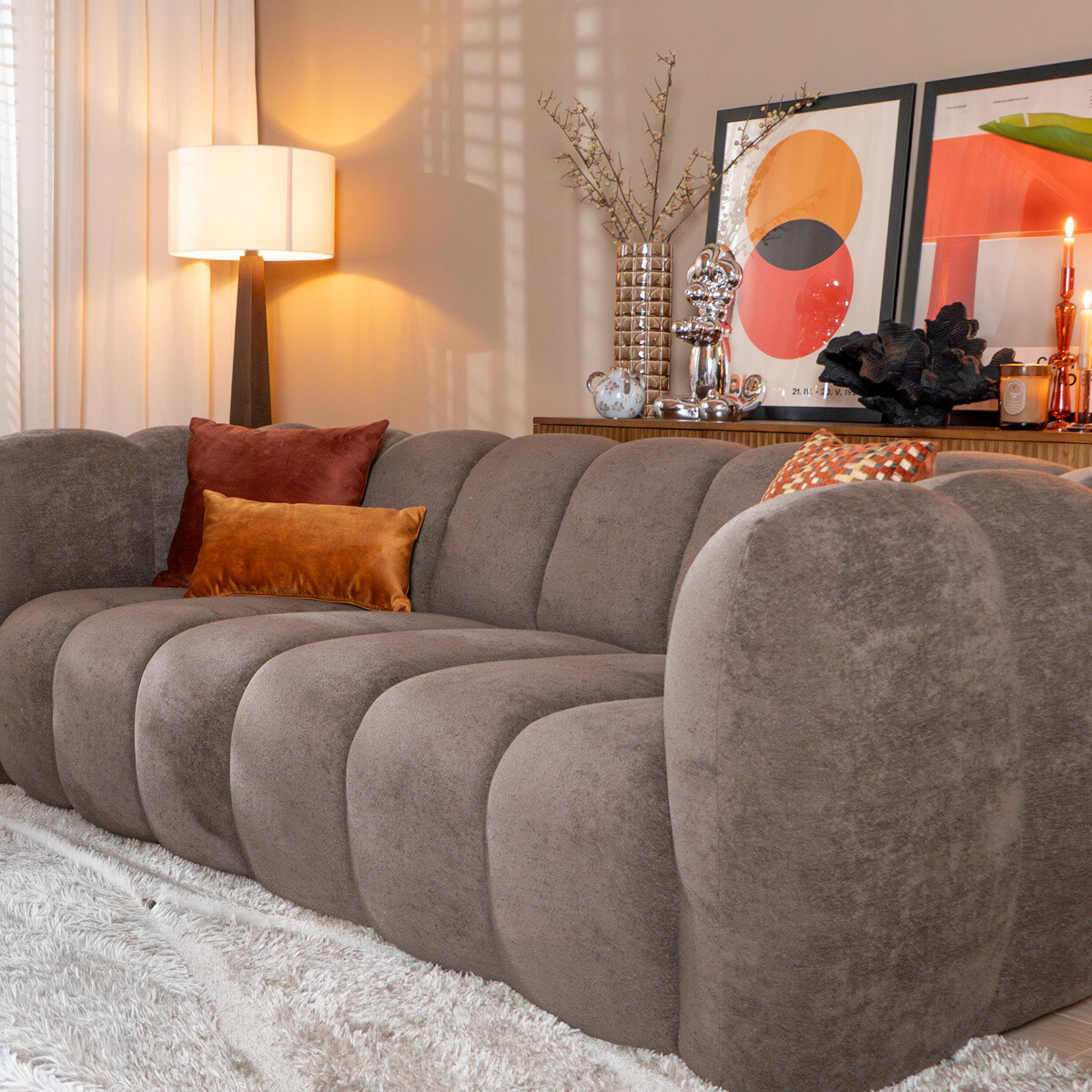 - De bank heeft van nature een geplooide look; dit is een bewuste designkeuze die wat minder strak kan ogen.