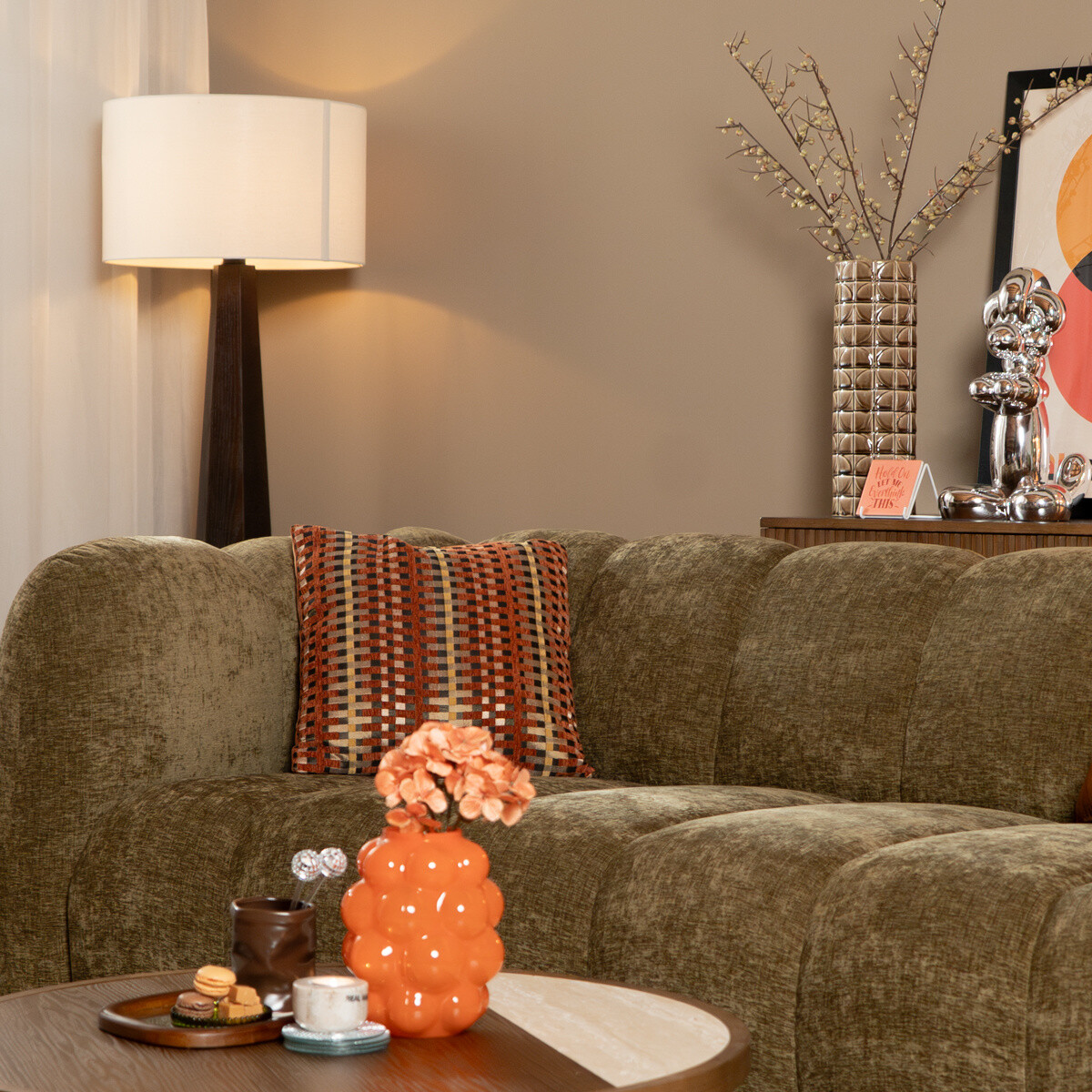 Vul hieronder je e-mailadres in om een bericht te ontvangen wanneer 3-zitsbank Luca chenille olijf groen weer op voorraad is.