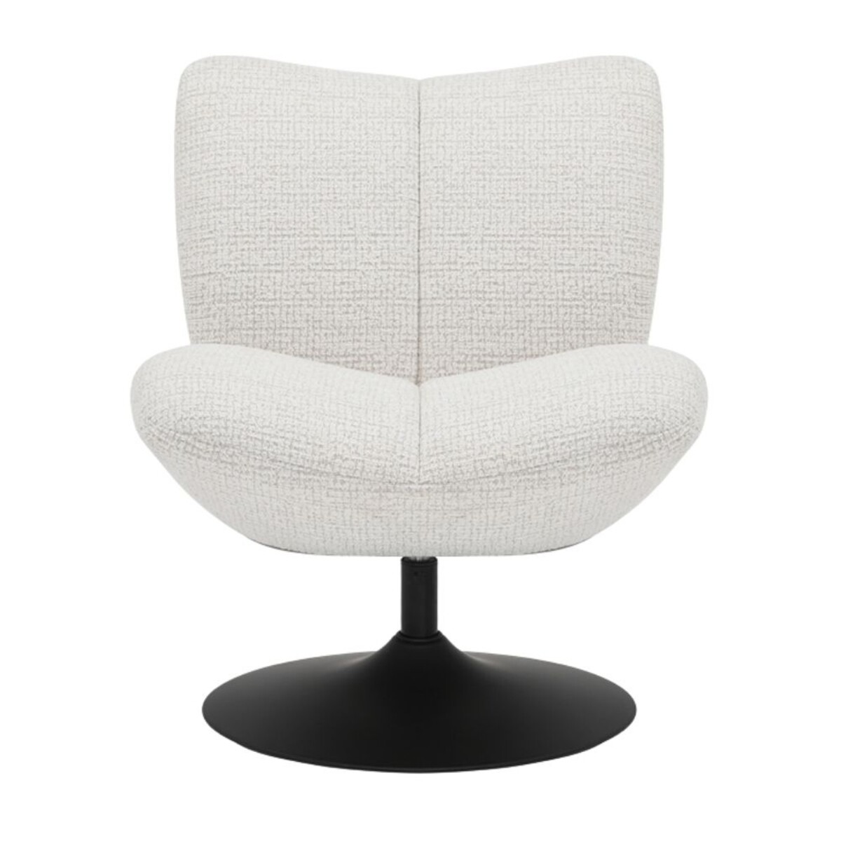 Draaifauteuil Moira is een compacte en stijlvolle stoel die weinig ruimte inneemt, maar veel comfort biedt. De gemêleerde beige bekleding en ronde vormen zorgen voor een moderne en warme uitstraling. Dankzij het zwarte draaionderstel is Moira niet alleen praktisch, maar ook een elegante toevoeging aan je interieur.