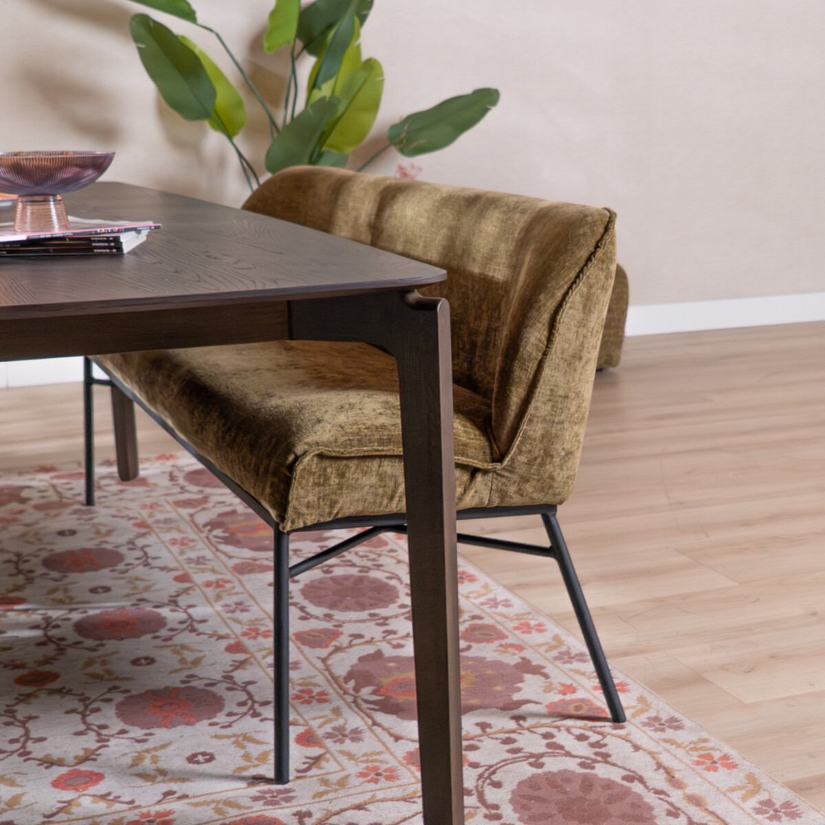 Eetkamerbank Momo chenille olijfgroen 220 cm