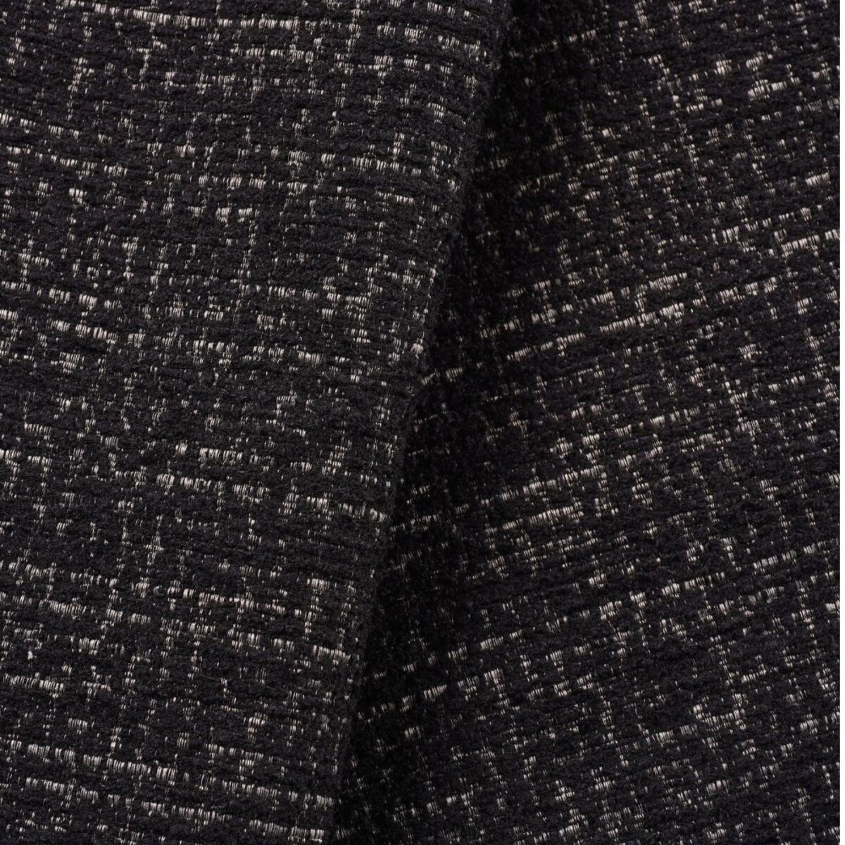 De eetkamerstoel is bekleed met een gemêleerde stof die bestaat uit 100% polyester. Op deze stof zijn minder snel vlekken te zien, wat de stoel niet alleen stijlvol, maar ook praktisch in gebruik maakt. De zwarte stof is subtiel verweven met een taupekleurig draadje, wat zorgt voor een verfijnd en levendig textuureffect.