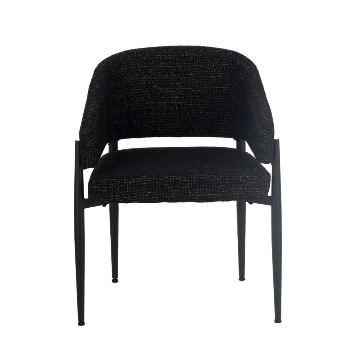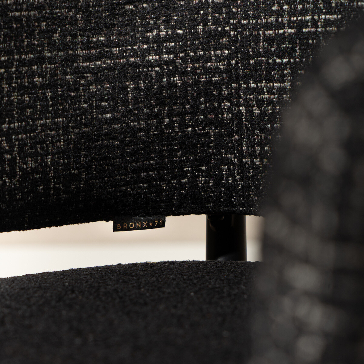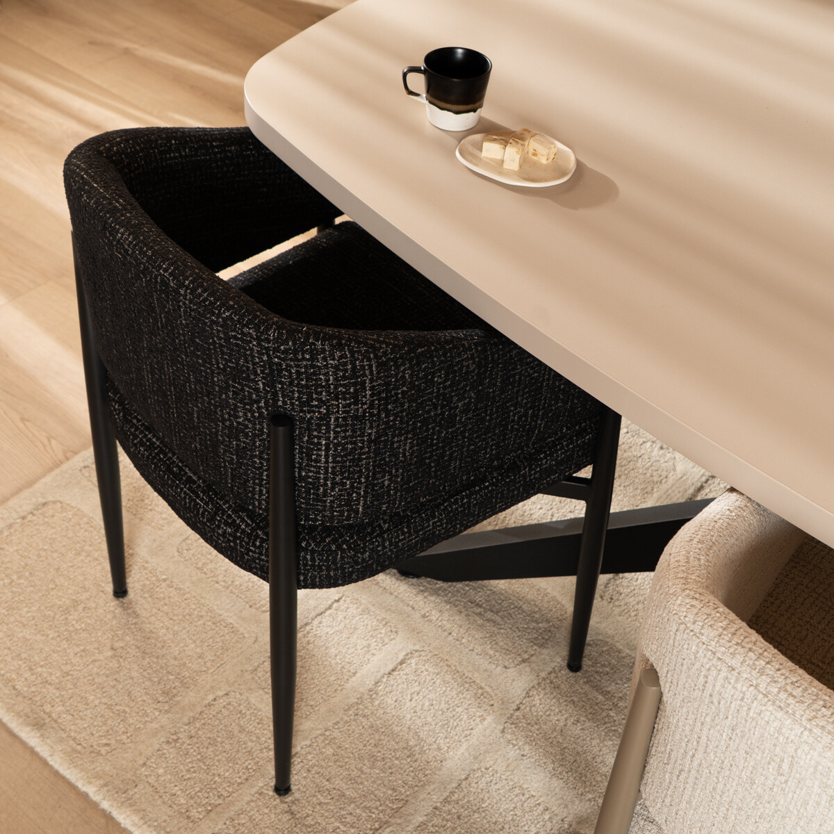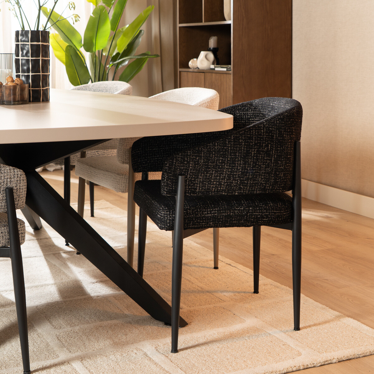 Eetkamerstoel Armin heeft door het zwarte frame in combinatie met de gemêleerde stof een exclusieve, stijlvolle uitstraling.