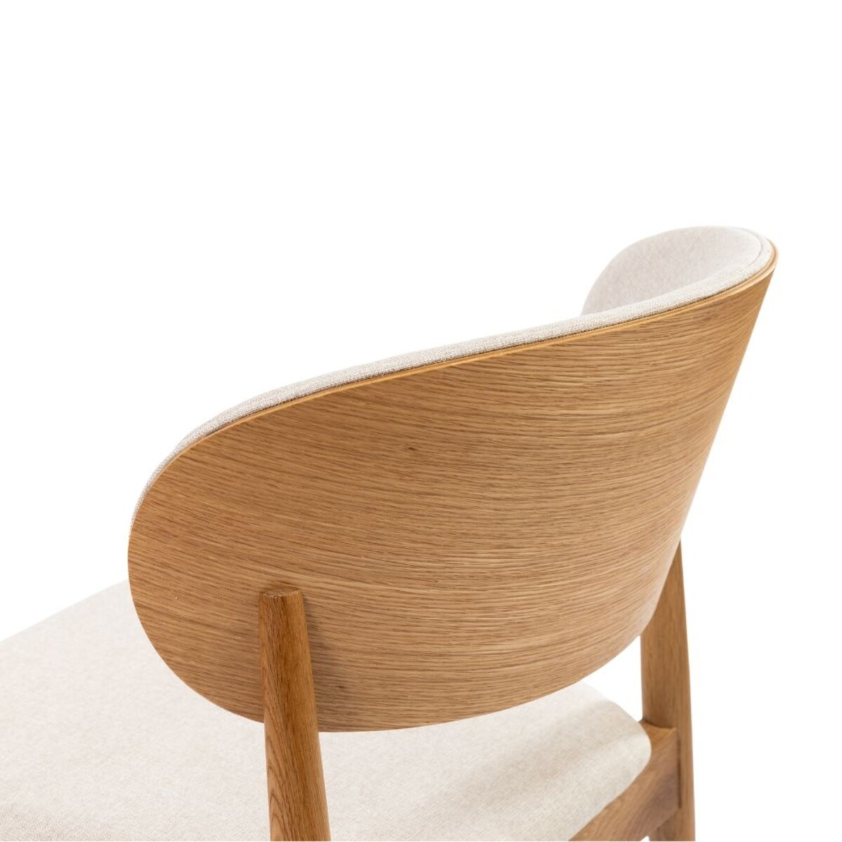 Maak kennis met Eetkamerstoel Bohdi, een verfijnde mix van modern design, zachte lijnen en praktische details. De stoel is bekleed met een water- en vuilafstotende linnen stof (100% polyester), ideaal voor een lichte en rustige eethoek. De rugleuning is aan de achterkant van hout en de voorkant gestoffeerd met de linnenstof.