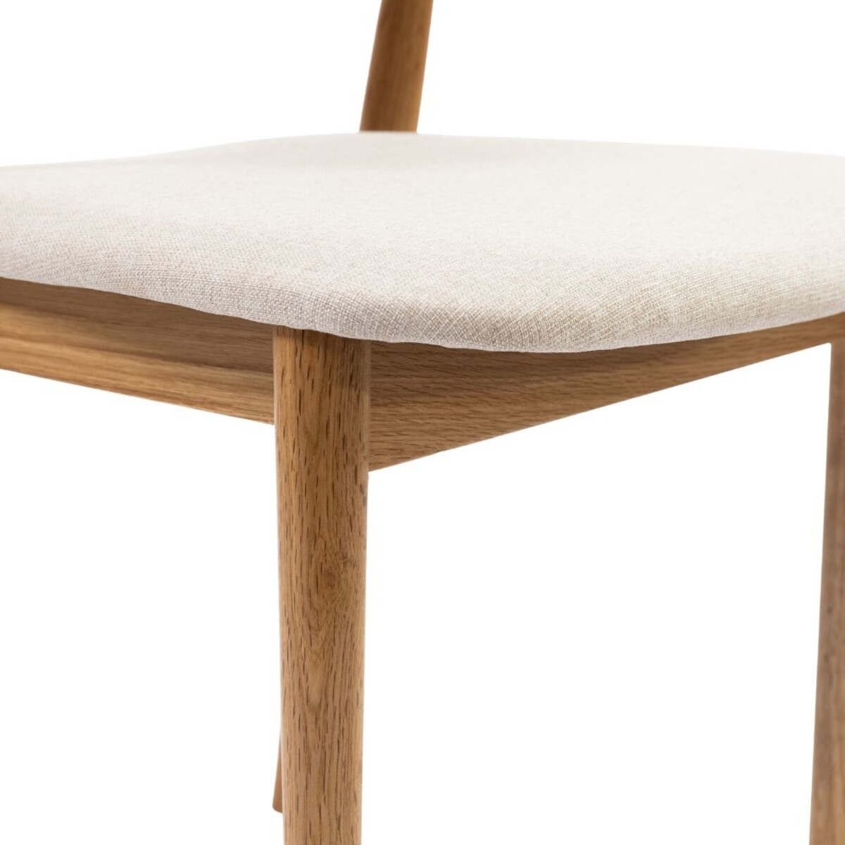 De stoel bevat een laag eikenfineer. Eikenfineer staalt warmte uit en is duurzaam. Eikenfineer is gevoelig voor krassen en deuken dus het is belangrijk om de eetkamerstoel goed te beschermen. Het is ook een goed idee om het meubel uit direct zonlicht te houden omdat dit de kleur van het fineer na verloop van tijd kan vervagen. Daarnaast is eikenfineer wel erg sterk, het buigt niet en trekt niet krom. Het frame is gemaakt van 100% massief eiken.