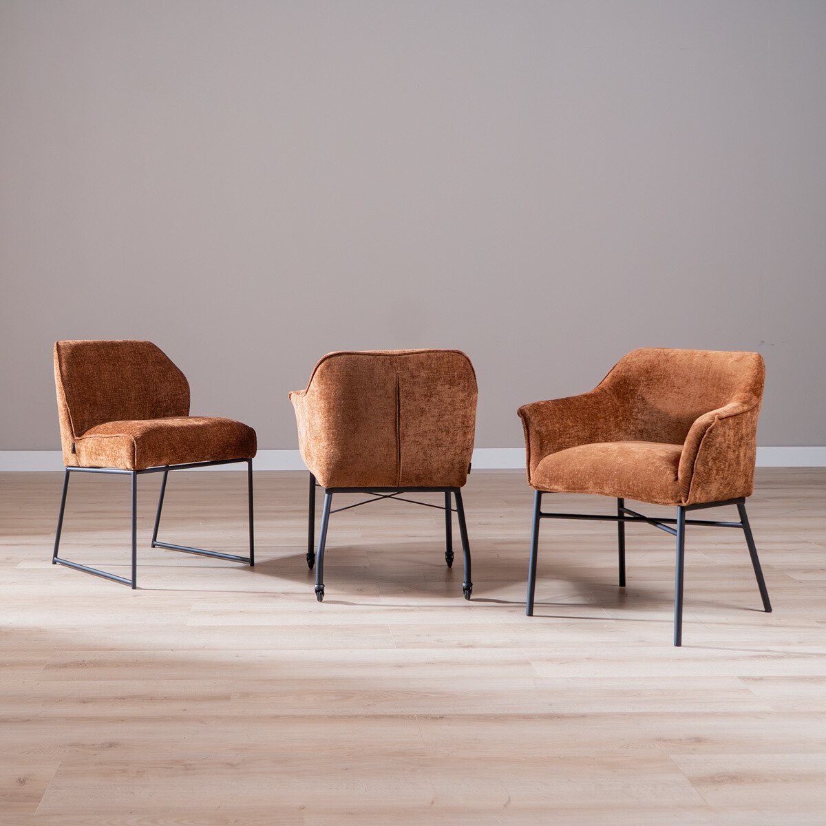 Eetkamerstoel met wieltjes Enzo chenille koper