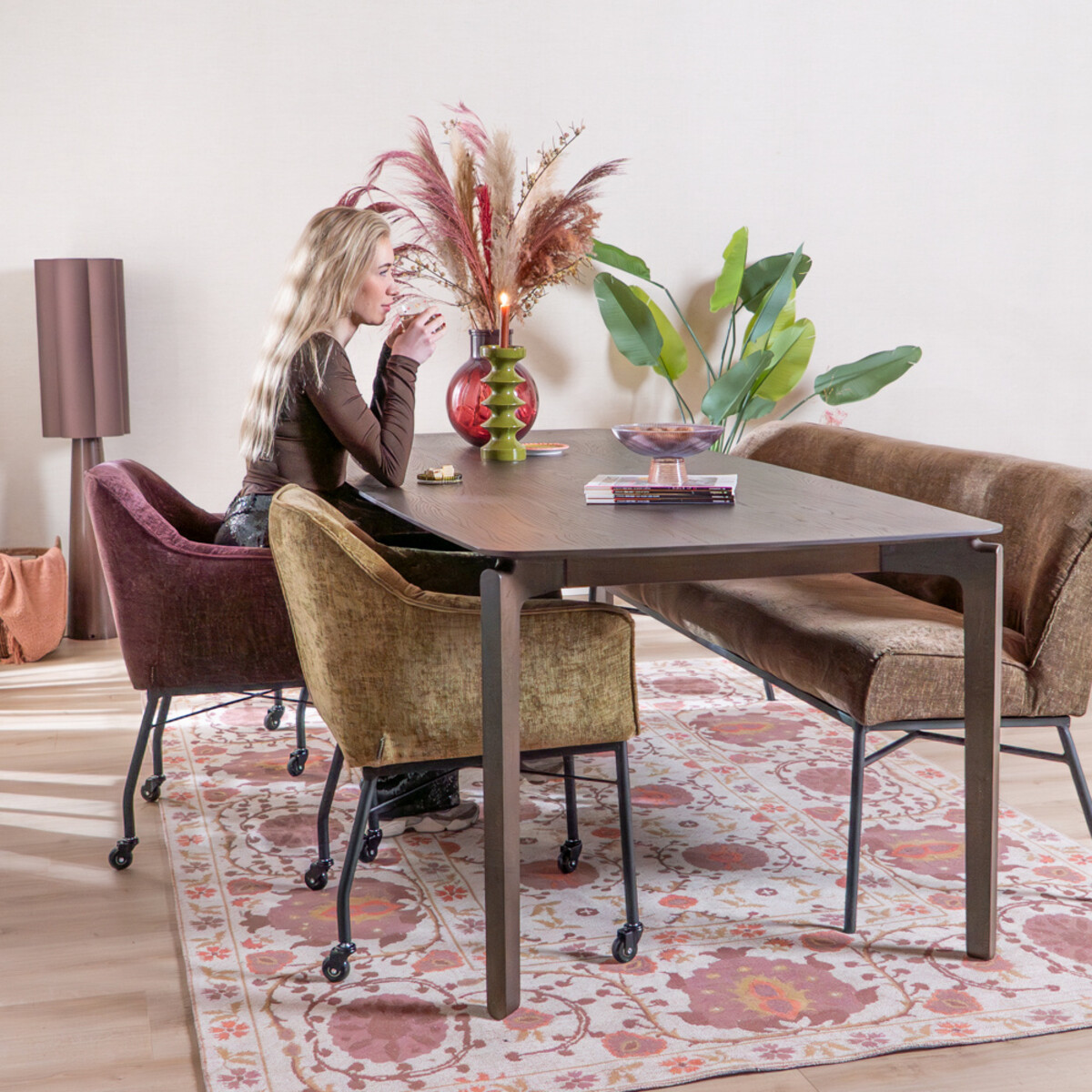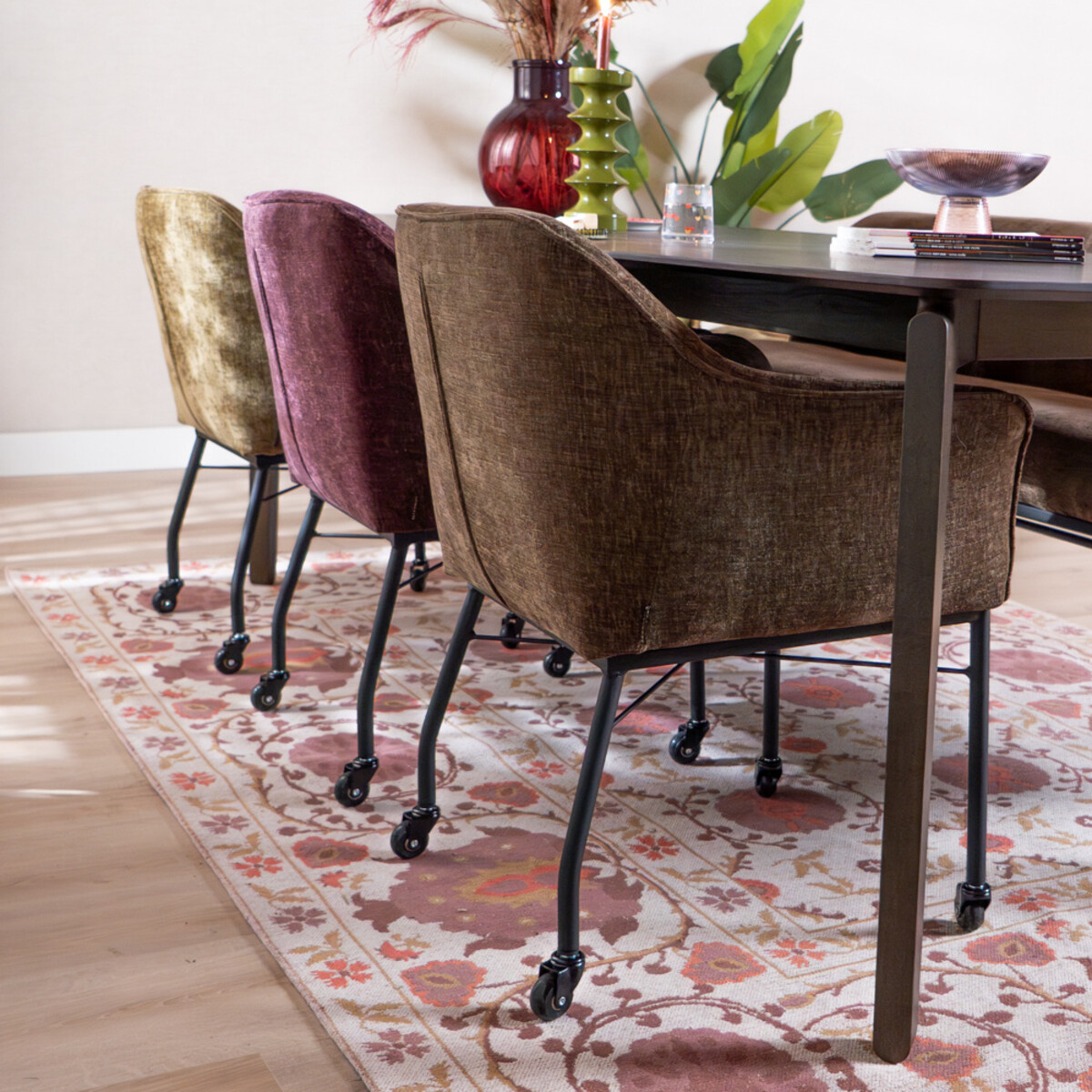 Eetkamerstoel met wieltjes Enzo chenille mocha