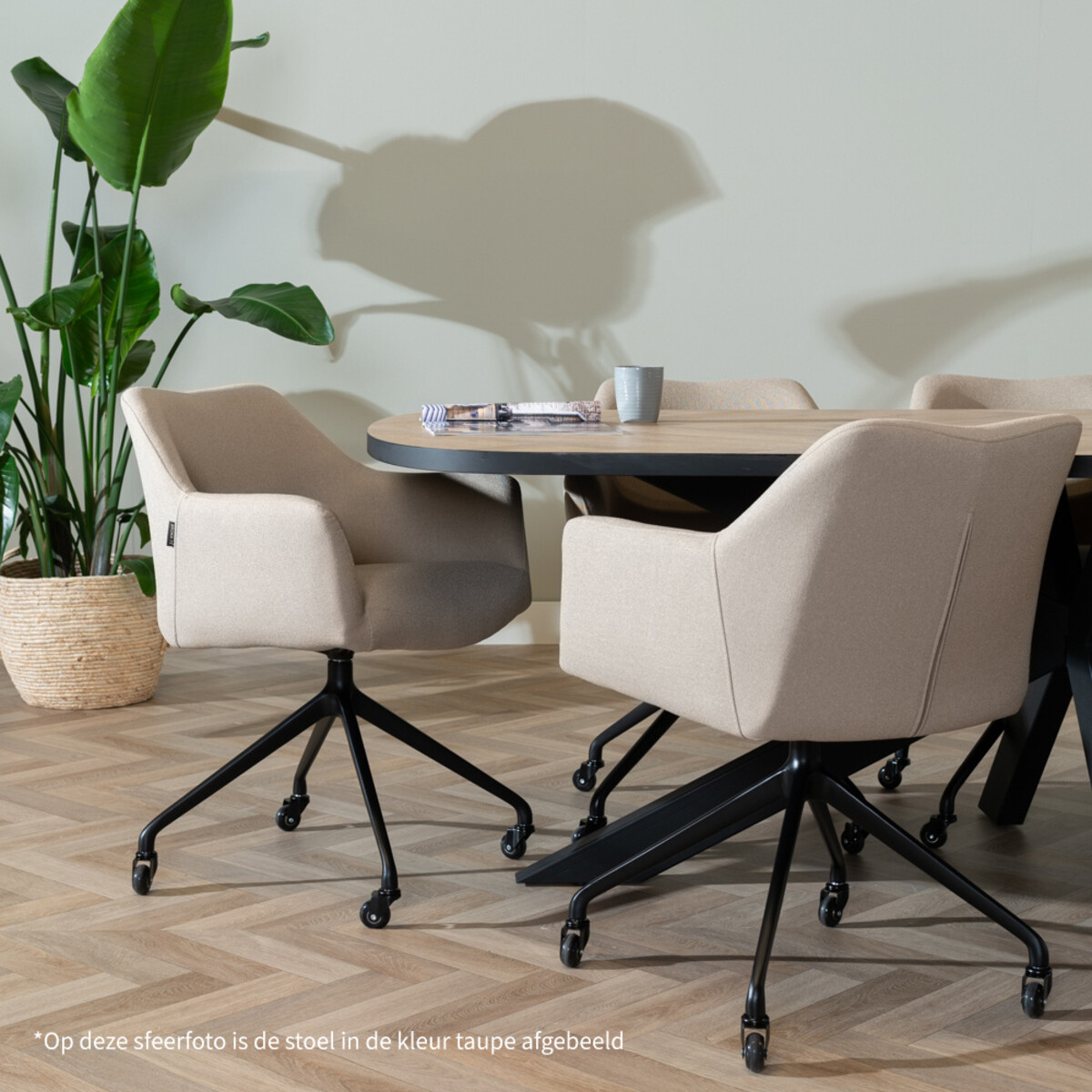 Eetkamerstoel met wieltjes Isak taupe gerecyclede stof