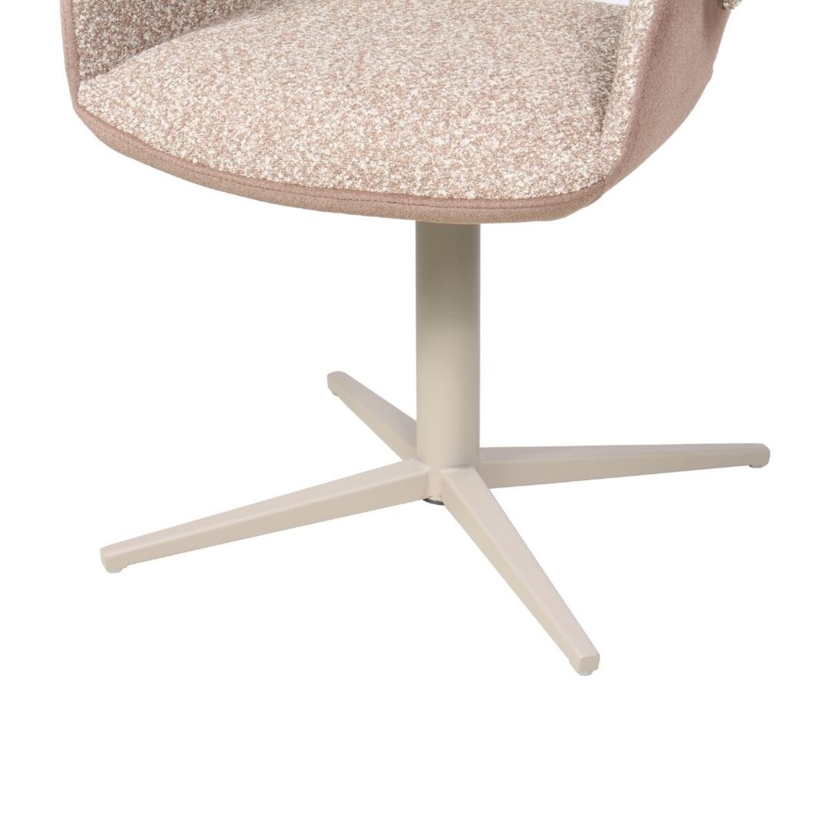 De eetkamerstoel is bekleed met een hoogwaardige bouclé stof met gemêleerde structuur, die bekend staat om zijn slijtvastheid en bijzondere uitstraling, daarbij beschikt de eetkamerstoel over een front- en back fabric afwerking. Het metalen frame is tone in tone gekleurd in dezelfde tint als de stof, wat zorgt voor een rustige en harmonieuze uitstraling aan tafel. Het stevige frame biedt stabiliteit, terwijl het lichte gewicht de stoel eenvoudig verplaatsbaar maakt.