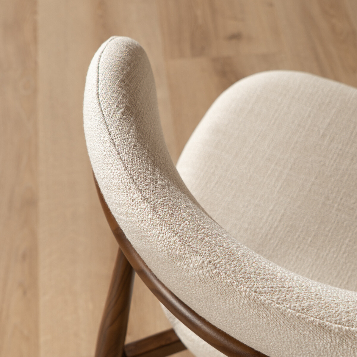 Of je nu een retro vibe of een serene Japandi inrichting hebt, eetkamerstoel Lara voelt zich overal thuis. Let wel op: de lichte stof is gevoeliger voor vlekken maar dit is goed te onderhouden/schoon te maken met onze textiel care & clean kit.