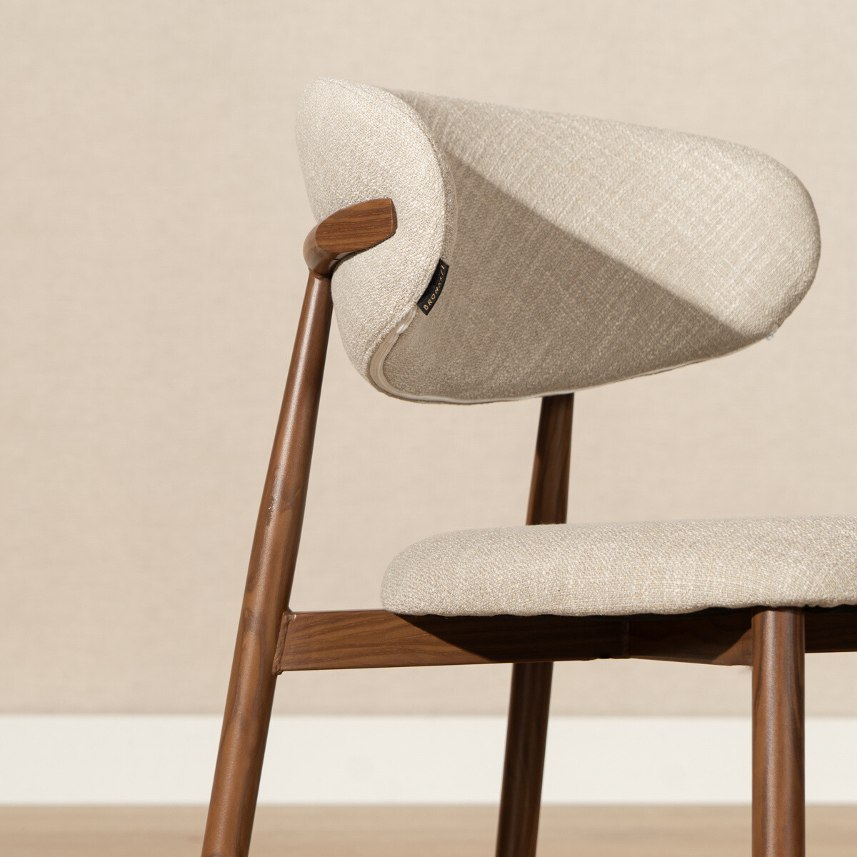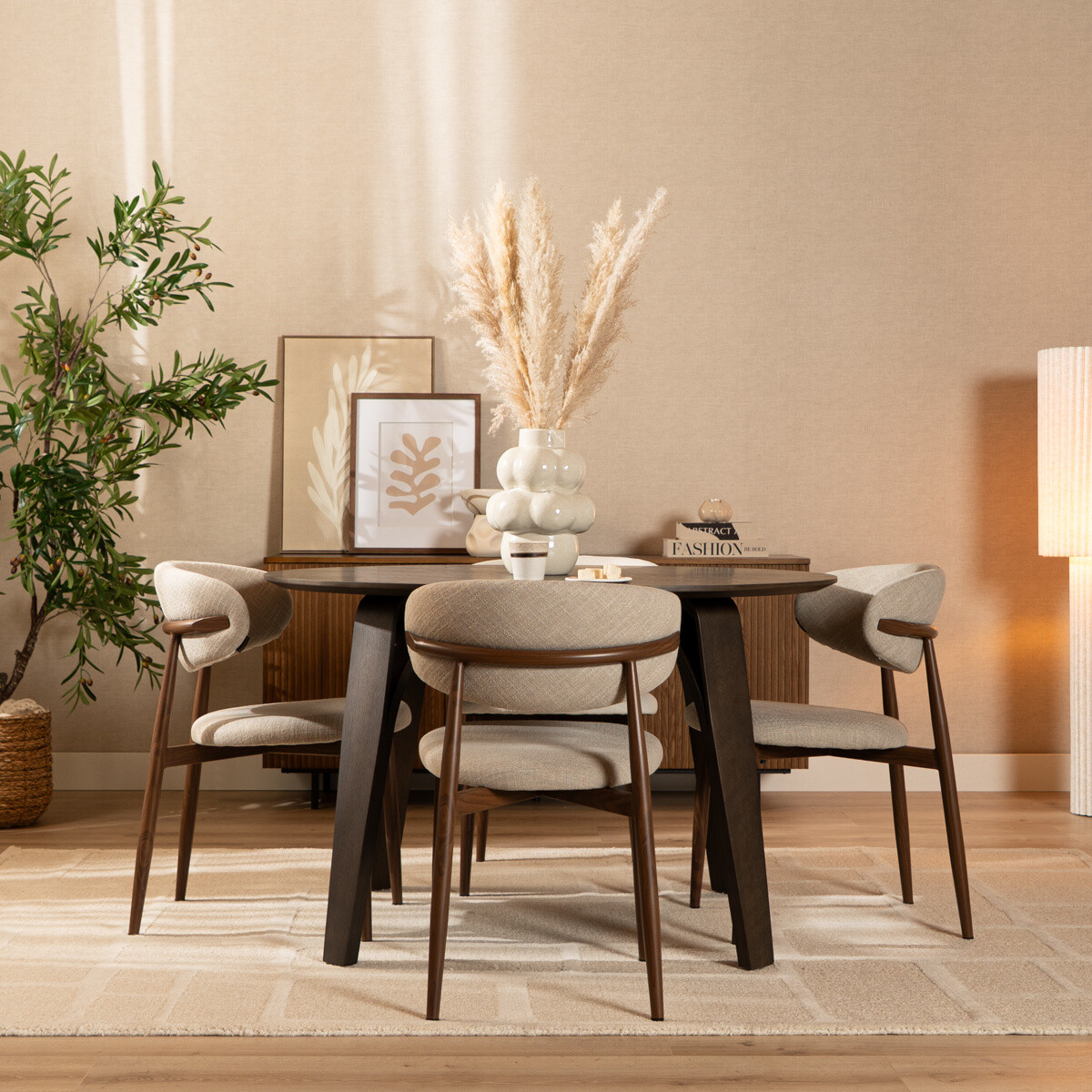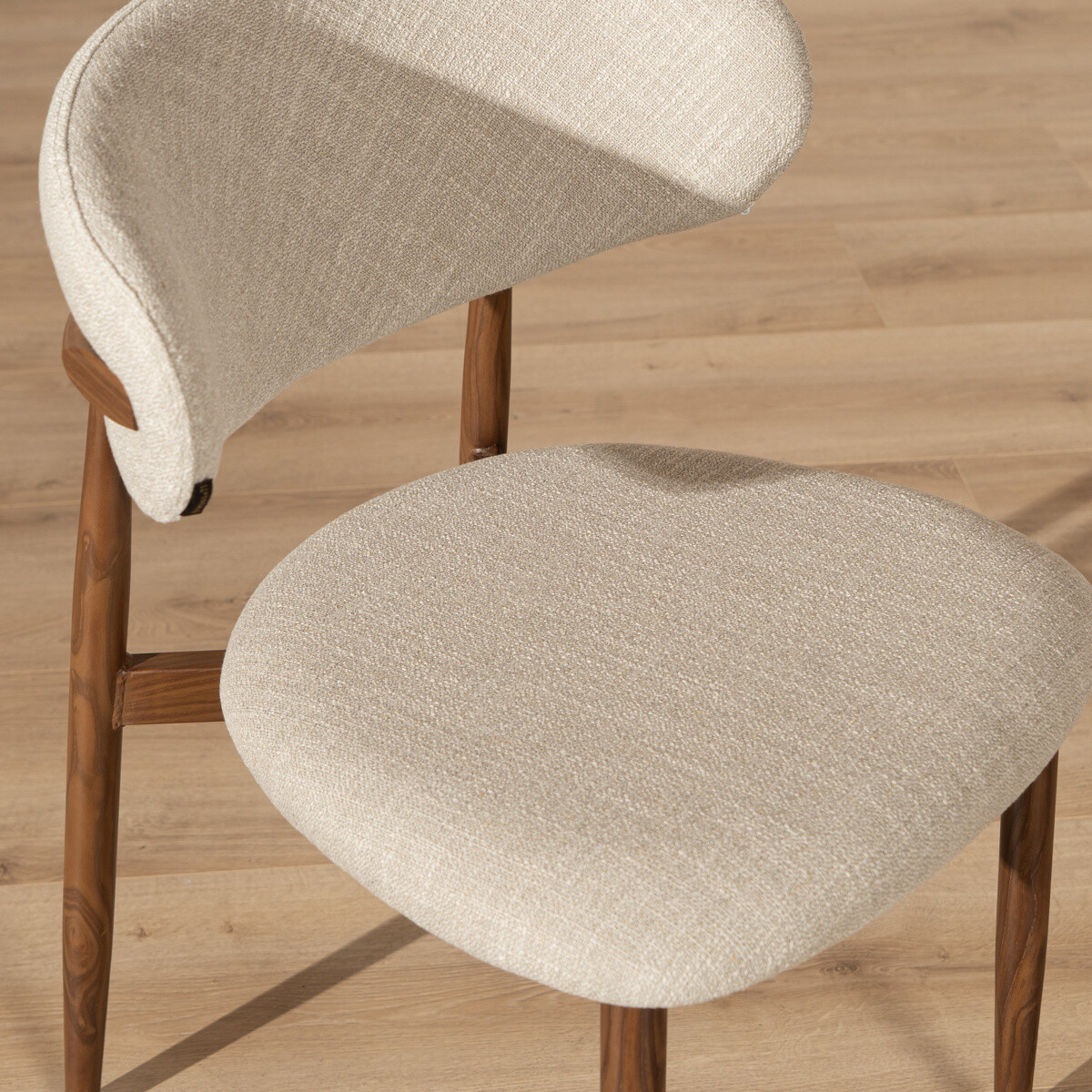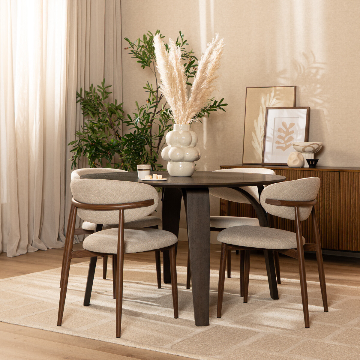 Of je nu een retro vibe of een serene Japandi inrichting hebt, eetkamerstoel Lara voelt zich overal thuis. Let wel op: de lichte stof is gevoeliger voor vlekken maar dit is goed te onderhouden/schoon te maken met onze textiel care & clean kit.