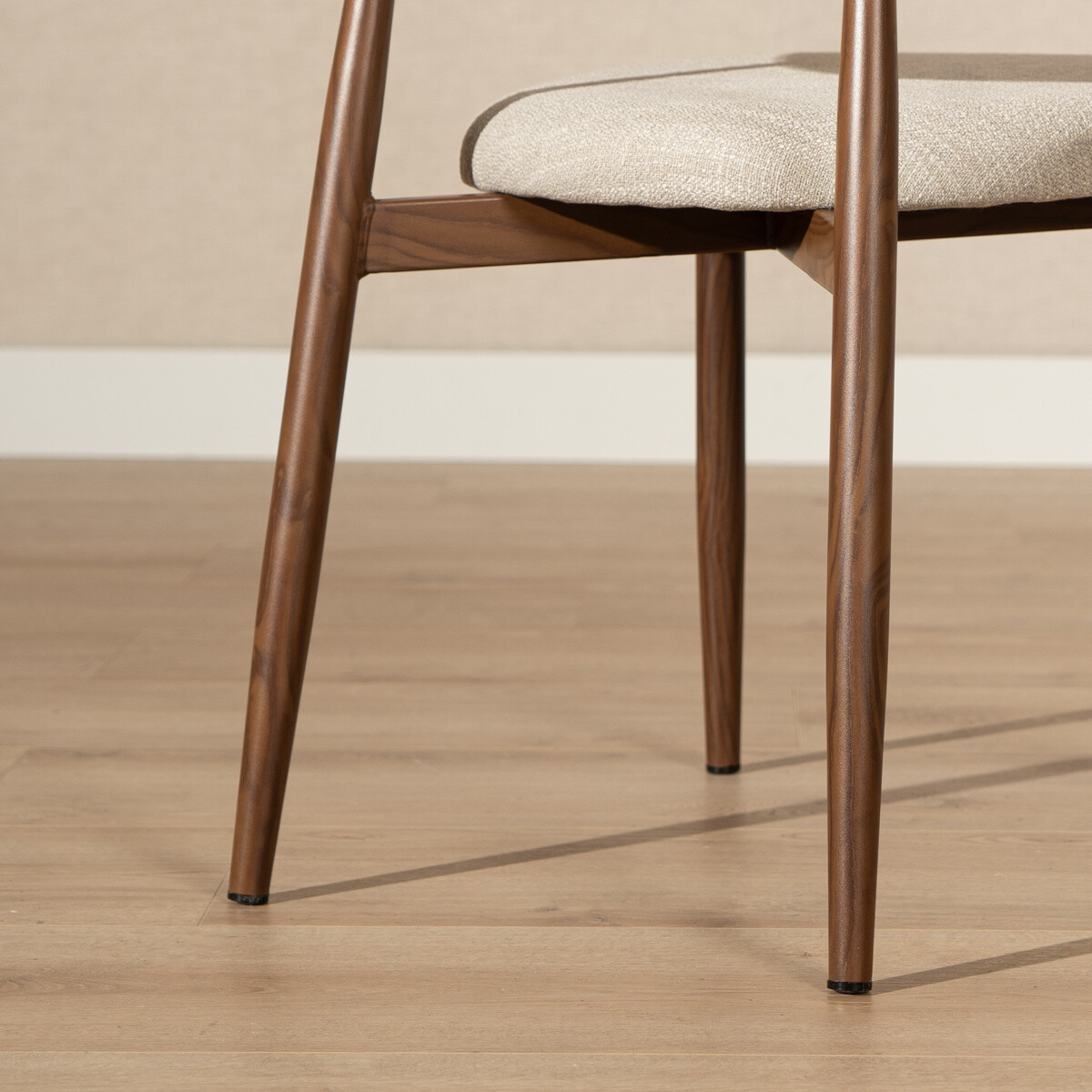 Het onderstel heeft een warme houtlook, maar is gemaakt van stevig metaal – voor een stabiele en solide basis met een natuurlijke uitstraling. De zithoogte van 47 cm zorgt voor een prettige, rechte zitpositie aan de eettafel.
