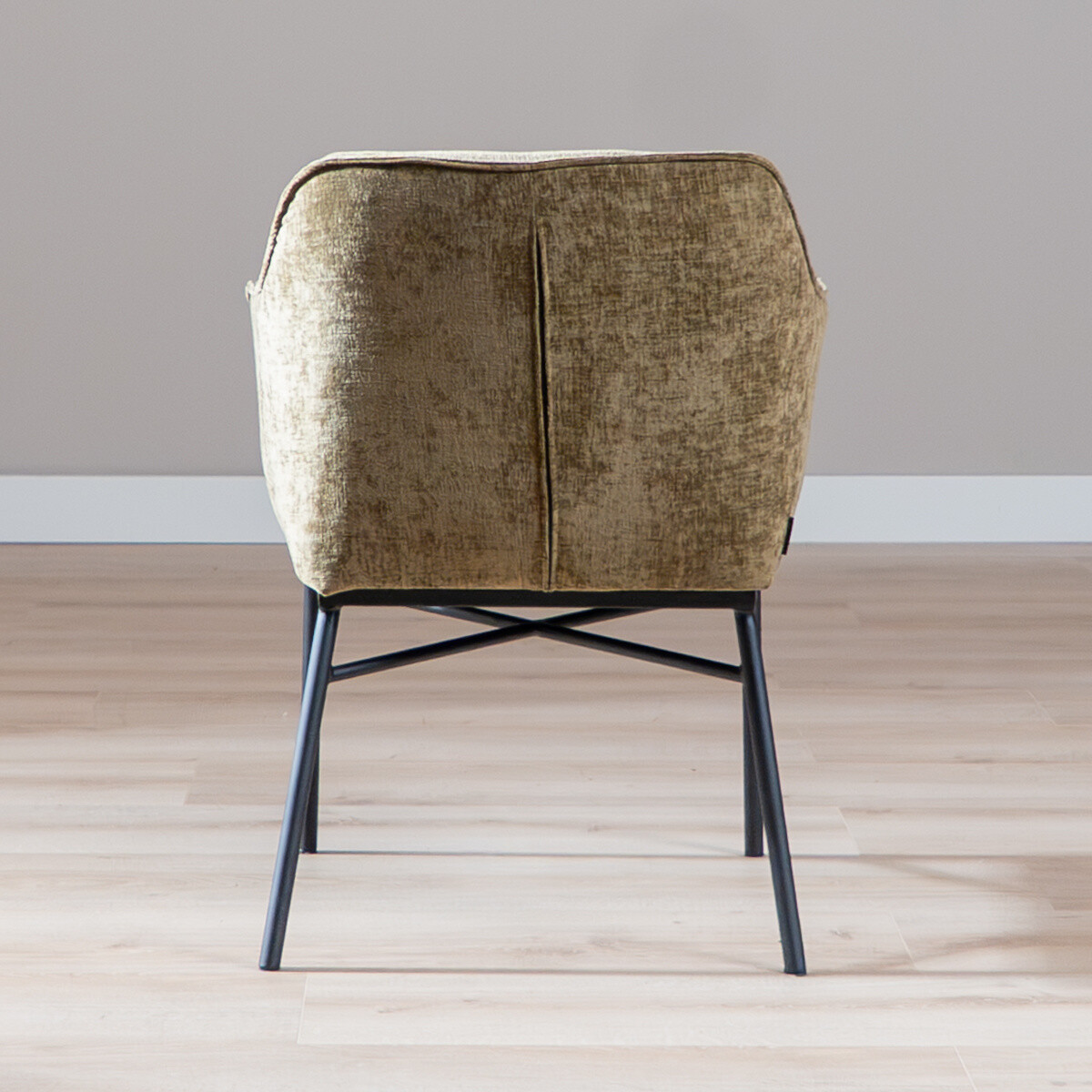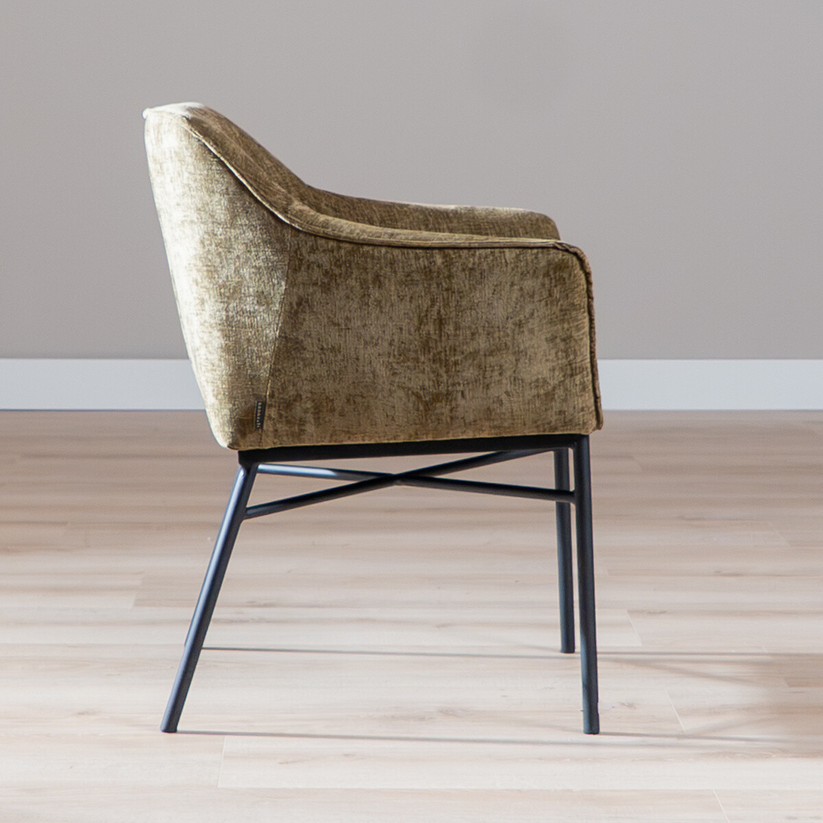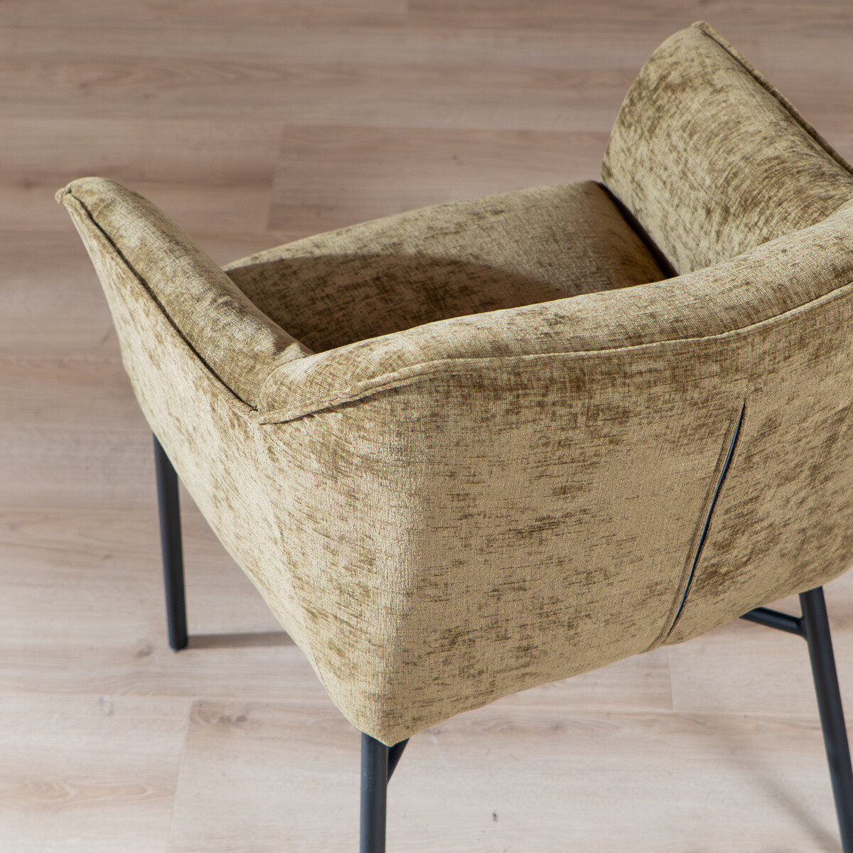 De Eetkamerstoel Nubo chenille olijfgroen tilt het comfort aan je eettafel naar een hoger niveau. De combinatie van een stevige basis en het zachte chenille maakt deze stoel niet alleen bijzonder comfortabel, maar ook een opvallend item in het interieur. Dankzij de olijfgroene tint past de stoel perfect binnen een urban interieur, waarmee je jouw eethoek een stijlvolle en eigentijdse uitstraling geeft.