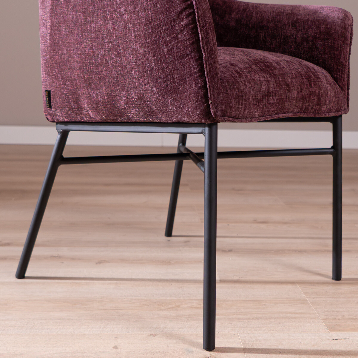 De Eetkamerstoel Nubo chenille paars tilt het comfort aan je eettafel naar een hoger niveau. De combinatie van een stevige basis en het zachte chenille maakt deze stoel niet alleen bijzonder comfortabel, maar ook een opvallend item in het interieur. Dankzij de paarse tint past de stoel perfect binnen a touch of color interieur, waarmee je jouw eethoek een unieke uitstraling geeft.