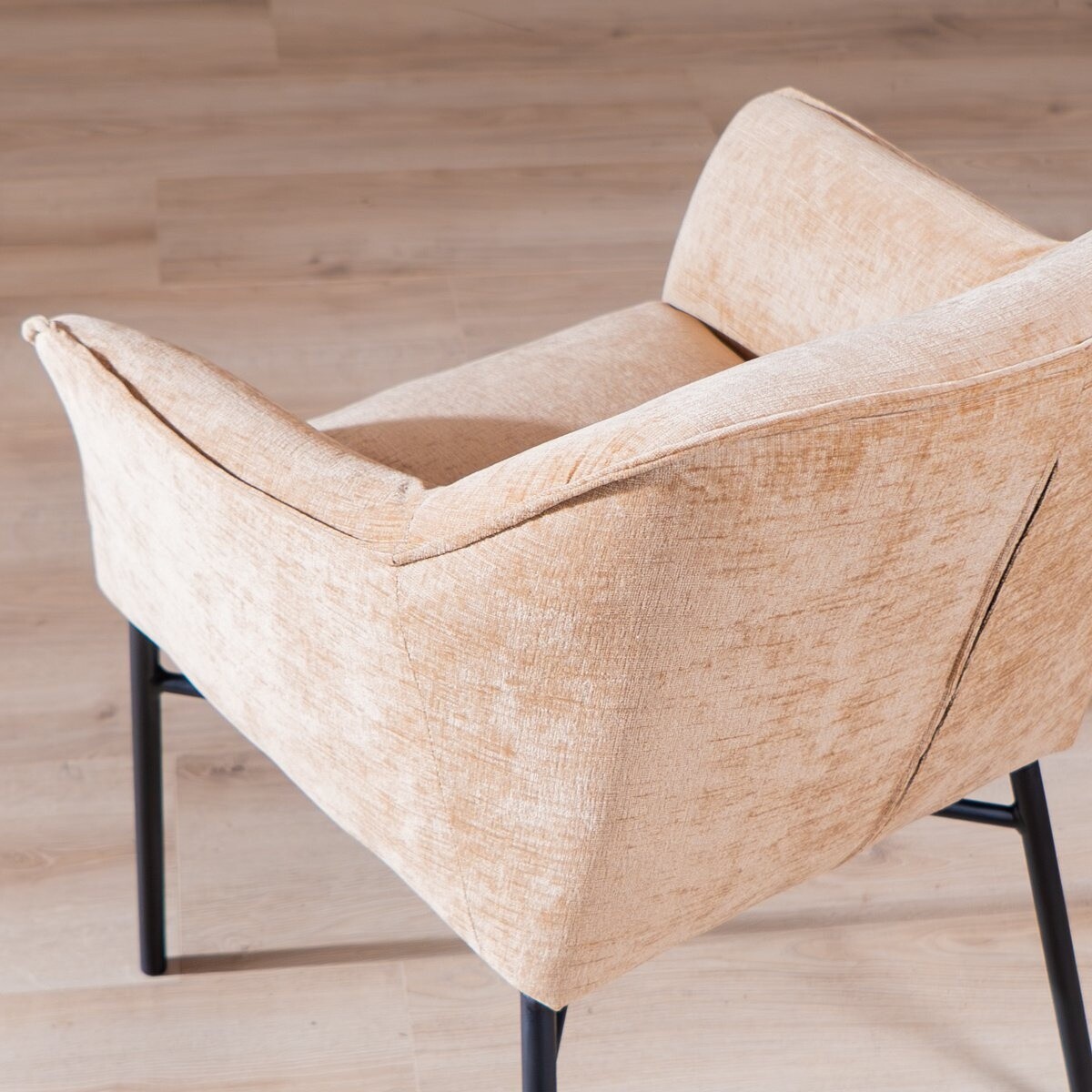 De Eetkamerstoel Nubo chenille peach tilt het comfort aan je eettafel naar een hoger niveau. De combinatie van een stevige basis en het zachte chenille maakt deze stoel niet alleen bijzonder comfortabel, maar ook een passend item in een scandinavisch interieur. Dankzij de lichte tint past de stoel perfect binnen een rustige sfeer, waarmee je jouw eethoek een cleane uitstraling geeft.
