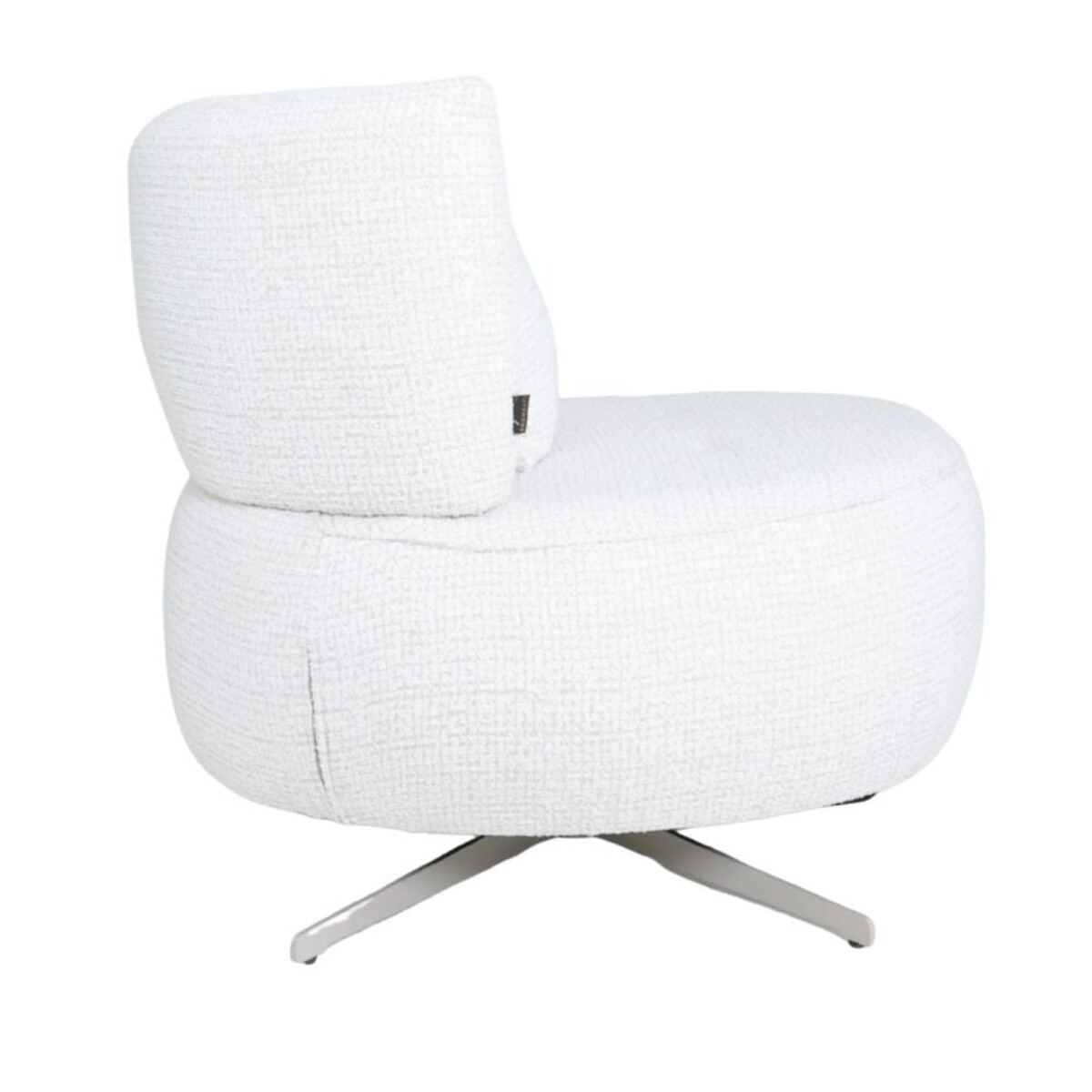De brede zit biedt extra ruimte en comfort, terwijl het meegeleverde losse rug kussen zorgt voor fijne ondersteuning en een ontspannen zitervaring. De 360 graden draaibare fauteuil biedt niet alleen een luxe zit plek maar voegt ook een vleugje klasse toe aan je woonruimte.