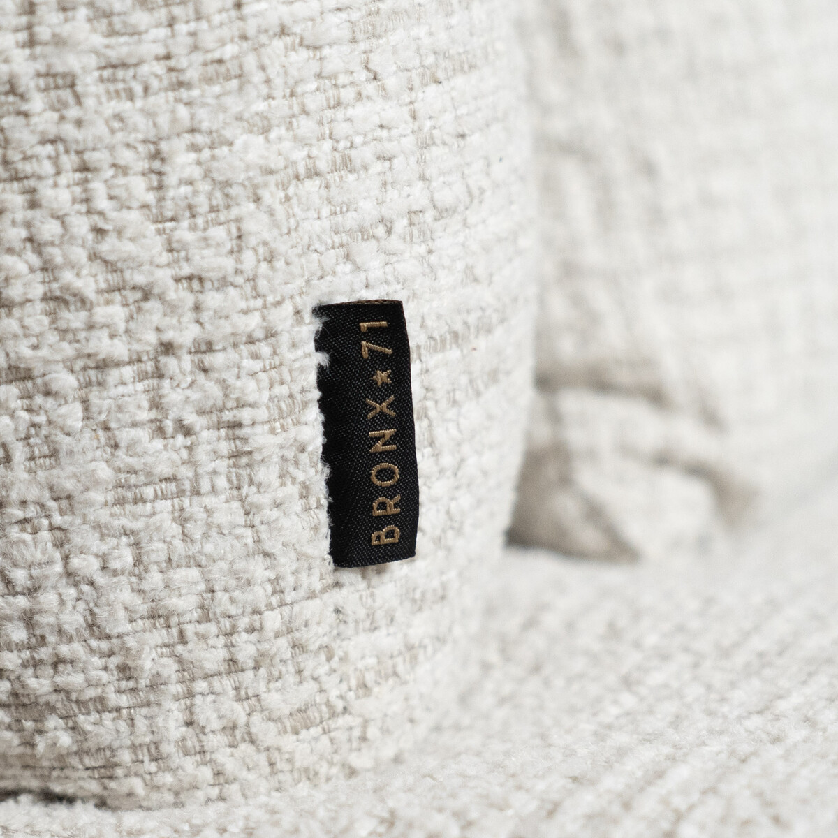 Fallon is bekleed met een gemêleerde stof in beige, geweven met twee kleuren garen die subtiel in elkaar overlopen. Dit creëert een geraffineerd geruit effect en geeft de fauteuil een luxe, verfijnde uitstraling. Dankzij het neutrale kleurgebruik is de stoel veelzijdig te combineren en past hij zowel in een modern, industrieel als tijdloos interieur. De stof is niet waterafstotend dus voor langdurige bescherming en het behouden van de mooie uitstraling adviseren wij het gebruik van een textiel care kit.