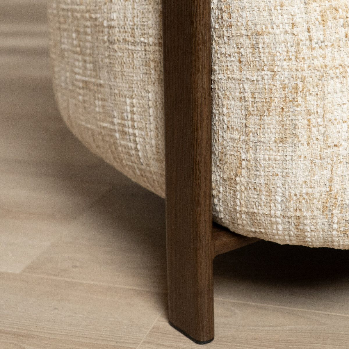 De Grace fauteuil is een verfijnde mix van elegant design en aangenaam zitcomfort. De ronde vormen en de royale zitting zorgen voor een ontspannen uitstraling, terwijl het houten onderstel een warme en stijlvolle basis geeft.