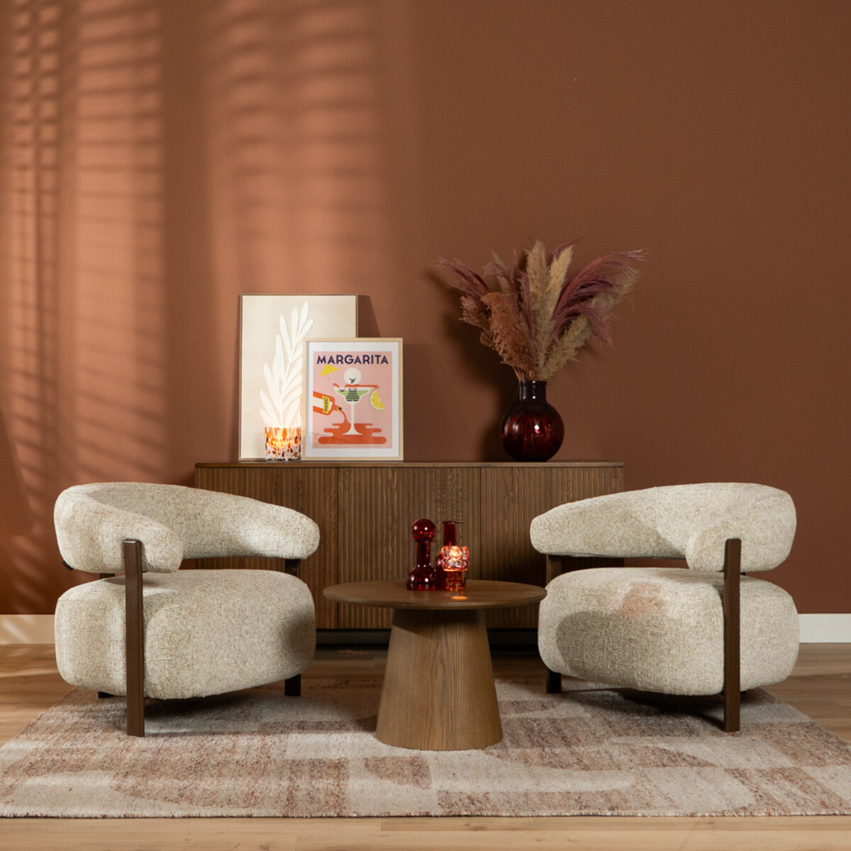 De Grace fauteuil is een verfijnde mix van elegant design en aangenaam zitcomfort. De ronde vormen en de royale zitting zorgen voor een ontspannen uitstraling, terwijl het houten onderstel een warme en stijlvolle basis geeft.