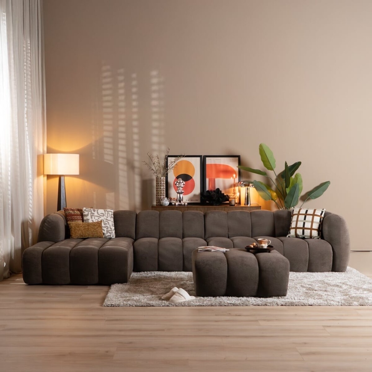 - Zeer slijtvaste en waterafstotende chenille stof, perfect voor intensief gebruik.