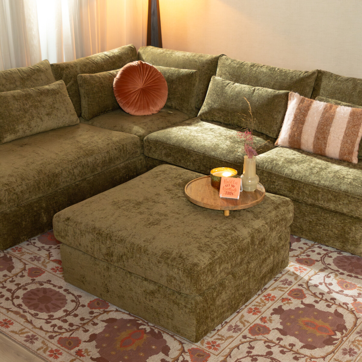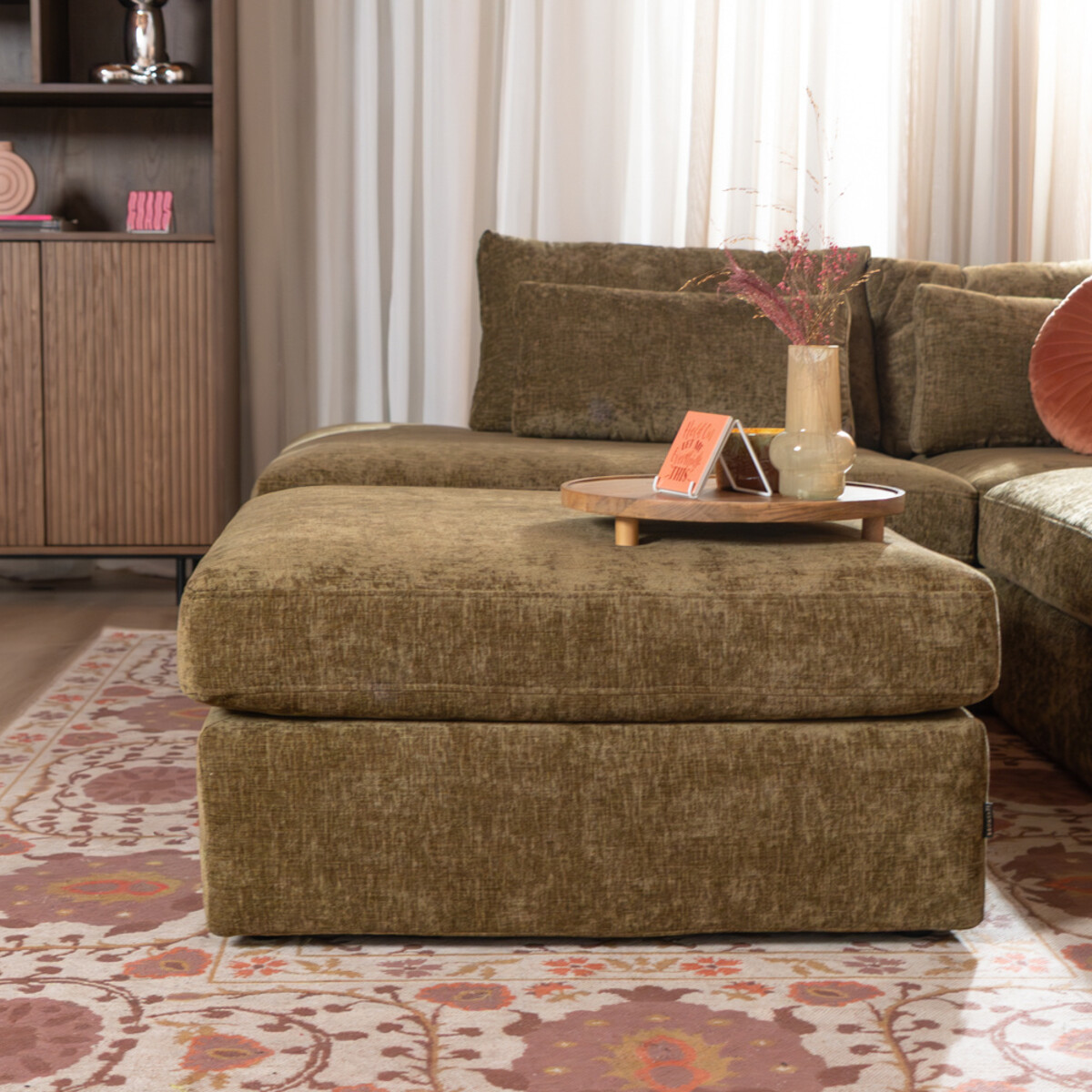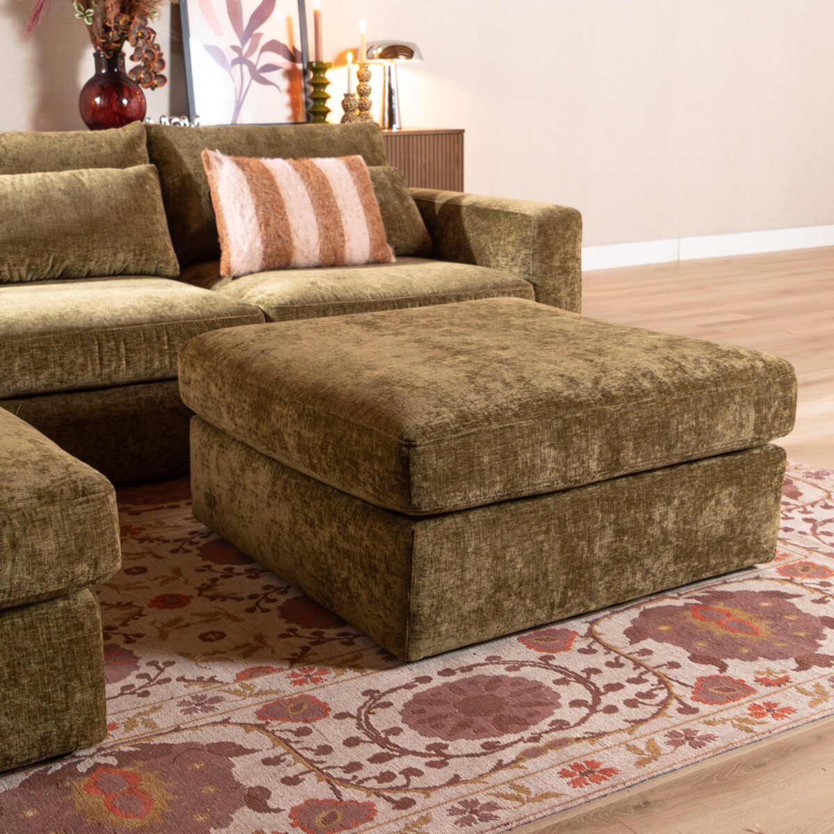 Hocker Kyle chenille olijf groen
