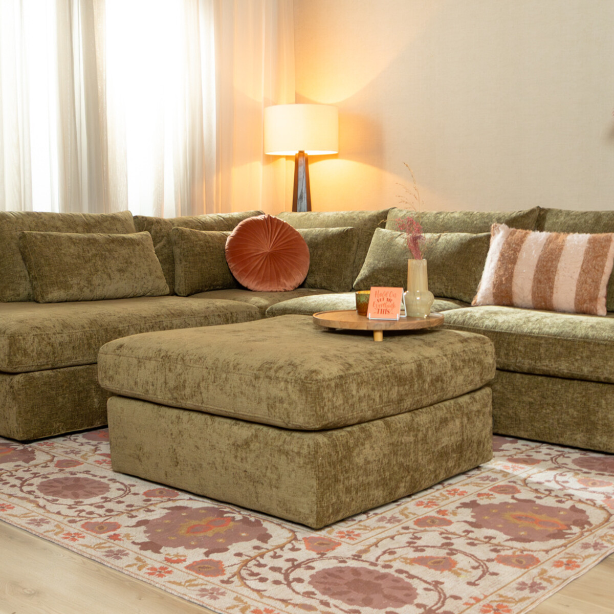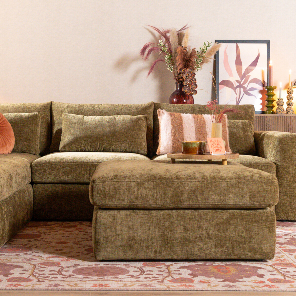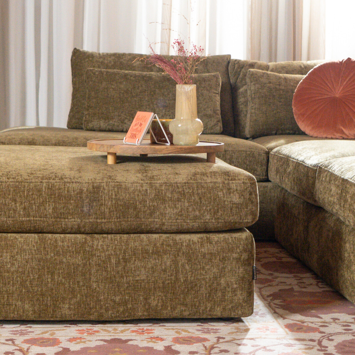 Hocker Kyle chenille olijf groen