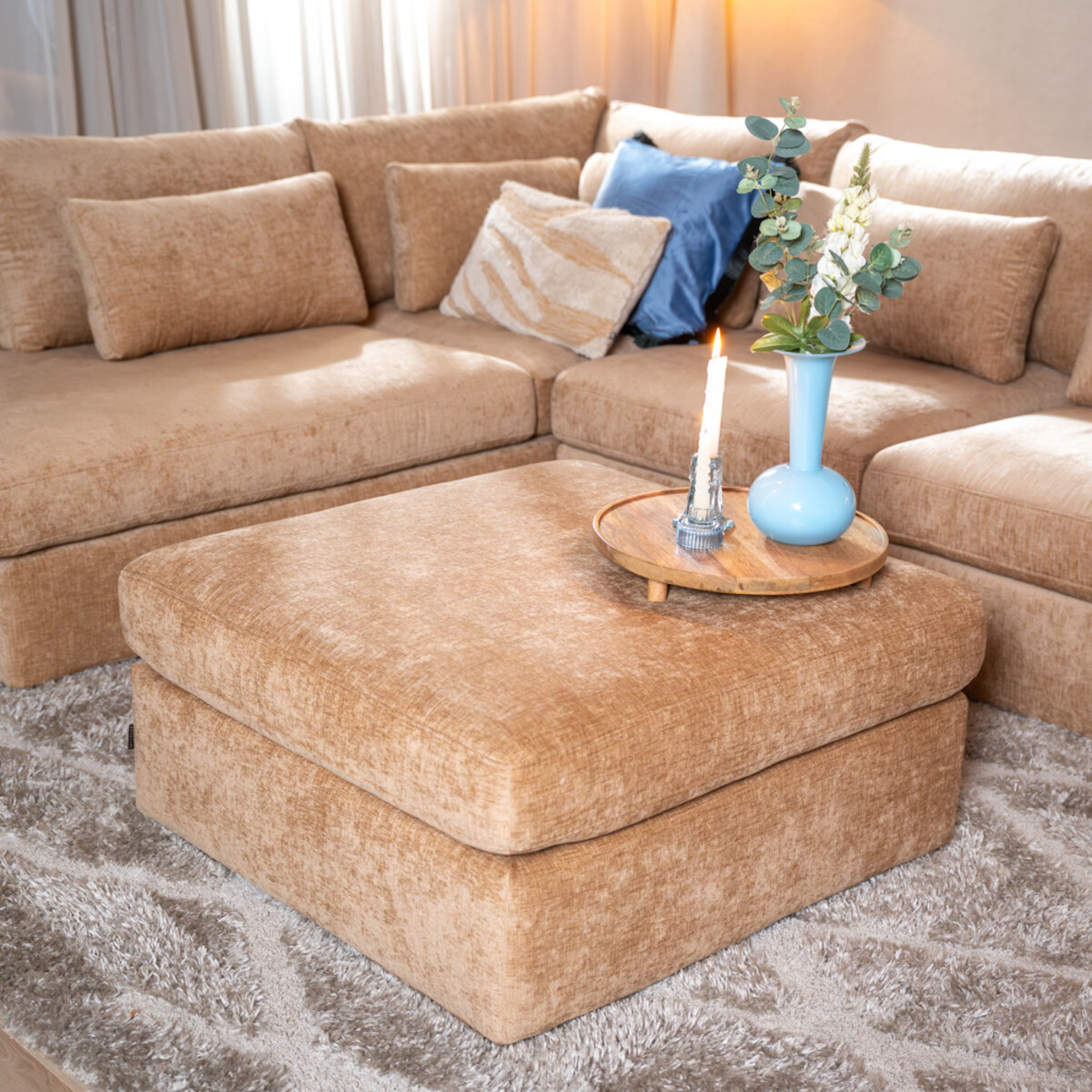 De opbouw van de hocker is zorgvuldig samengesteld voor optimaal zit- en loungecomfort. De zitting is gemaakt van HR3030 koudschuim, een vulling die bekend staat om de hoge veerkracht en duurzaamheid. HR-schuim behoudt zijn vorm langdurig en biedt jaren comfort, terwijl de nosagveren het zitvlak extra ondersteuning geven. Dankzij deze opbouw geniet je van een comfortabele, stevige zit of fijne steun voor je benen.