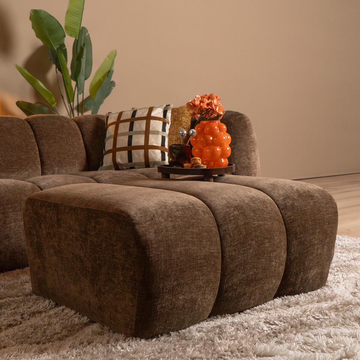 De hocker Luca in onze Eddy stof is de perfecte aanvulling op de Luca bankenlijn. Gebruik de hocker als comfortabel voetenbankje, extra zitplek of als verlengstuk van je bank voor nog meer loungecomfort. Dankzij het royale formaat en de kleurrijke uitstraling voegt deze hocker moeiteloos karakter en functionaliteit toe aan je interieur.