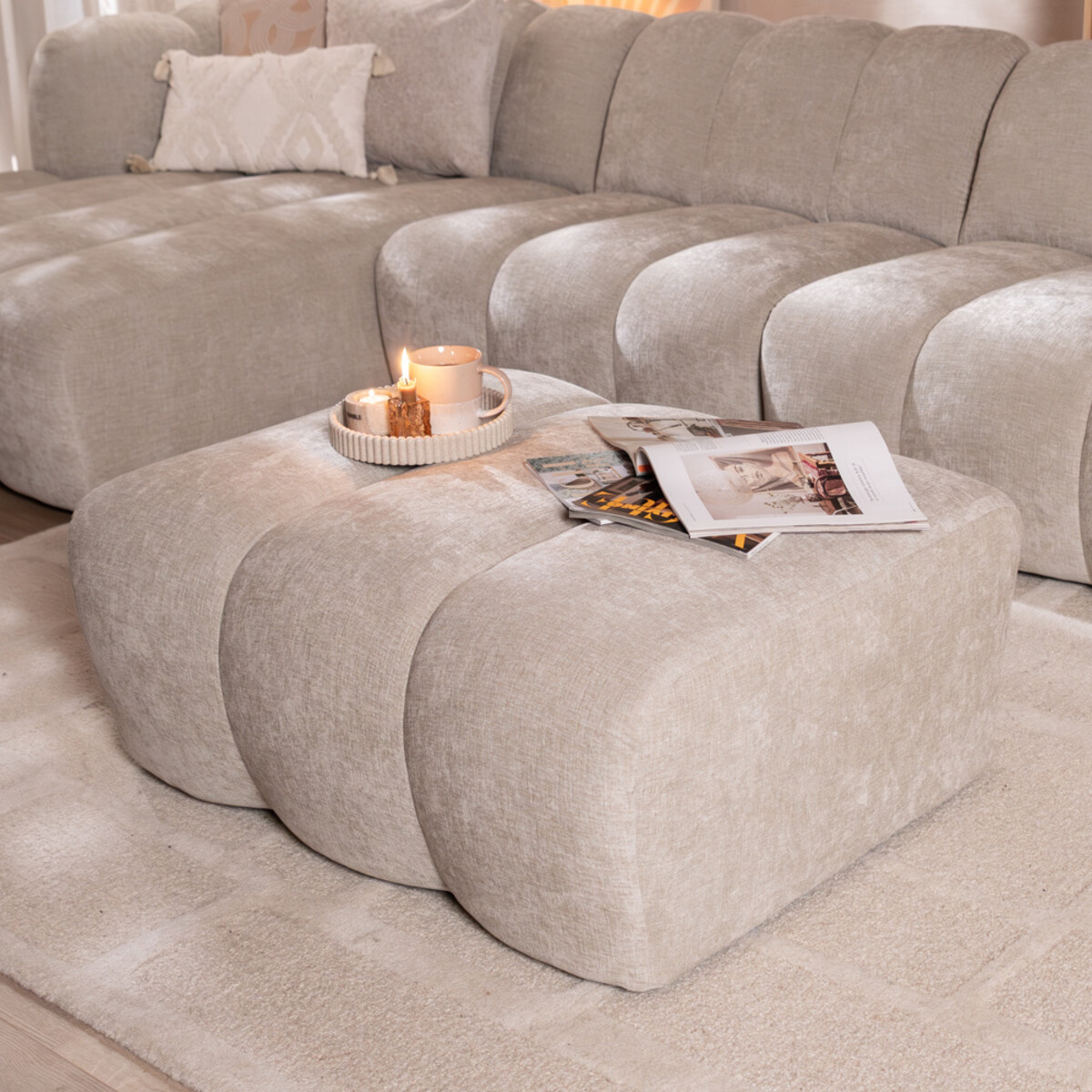 De hocker Luca in onze Eddy stof is de perfecte aanvulling op de Luca bankenlijn. Gebruik de hocker als comfortabel voetenbankje, extra zitplek of als verlengstuk van je bank voor nog meer loungecomfort. Dankzij het royale formaat en de kleurrijke uitstraling voegt deze hocker moeiteloos karakter en functionaliteit toe aan je interieur.