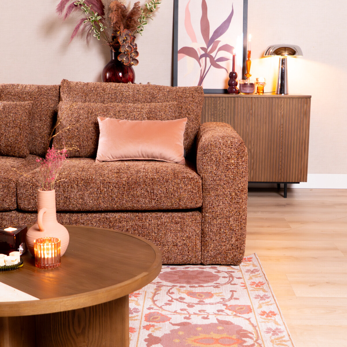 Het onderhouden van de bank is eenvoudig. Dep gemorste vloeistoffen direct met een droge doek, vermijd wrijven of schrobben om de stof te beschermen. Wekelijks stofzuigen met een zachte meubelborstel houdt het materiaal fris en mooi. Voor diepere reiniging adviseren wij het gebruik van onze Textiel Care Kit voor het beste resultaat en langdurig behoud van de stof.