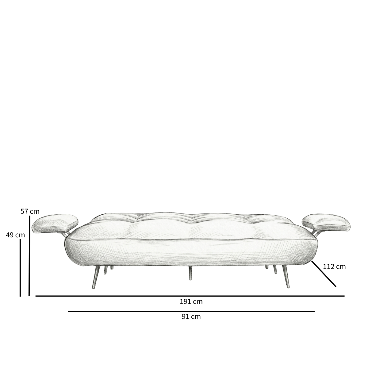 Met een simpele beweging klap je de rugleuning naar beneden, waarna de bank in een paar seconden verandert in een volwaardig bed. De stevige constructie, bestaande uit een frame van eucalyptus-hout met een zitting van gerecycled schuim, biedt de ideale combinatie van zachtheid en steun. Je hoeft alleen een hoeslaken en kussen toe te voegen om de slaapbank direct gebruiksklaar te maken.