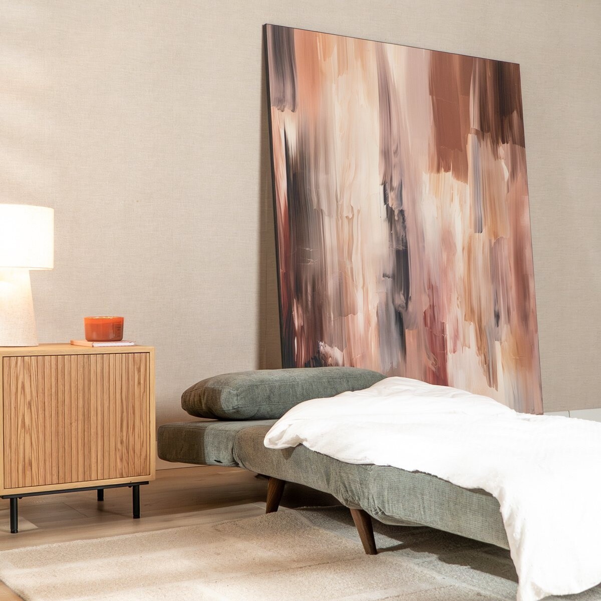 Deze slaapbank is zorgvuldig opgebouwd voor optimaal comfort en duurzaamheid. De zitting en het liggedeelte bestaan uit een kern van 2 cm dik schuim met een dichtheid van 25 kg/m³, aangevuld met een 7 cm dikke laag polyfiber. Deze polyfiber is met de hand in kleine pockets geplaatst voor een gelijkmatige verdeling en extra zachtheid. Daarnaast is de slaapbank voorzien van nosag veren, die zorgen voor een stevige ondersteuning en een lange levensduur.